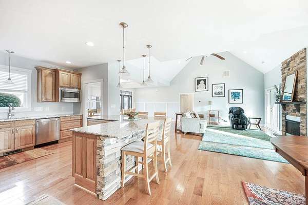Come see the most unique floor plan. Life is full of transitions, whether you require 6 bdrms or you need an extra living quarters w/full kitchen on the terrace level. This floor plan is so flexible & ready for every season of life. Entertaining is no challenge with a large open dinning space, roomy breakfast area & 6 comfy chairs will fit perfectly at the island. You will not believe the size of this deck. Grilling & dinning with comfy outdoor seating will have you watching the big game outdoors for sure. Covered patio below doubles the space, fire pit patio area with gorgeous stone work. The Primary suite includes a sitting area, large walk-in closet, oversized bathroom w/jacuzzi tub & wlk/in shower w/beautiful tile. There is a rare hidden jewel just thru the door into a Jack&Jill laundry suite complete w/ granite, coffee bar area & solid cabinets. A pretty drop zone,& wlk-in pantry. The 2nd floor split stairway is a must see & leads to two separate sitting areas & 2 huge bedrooms