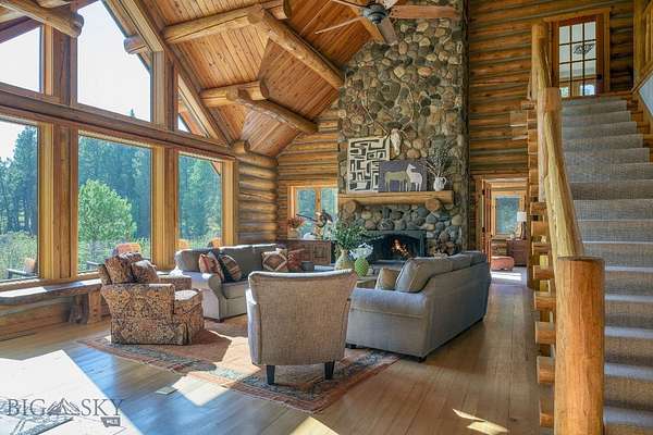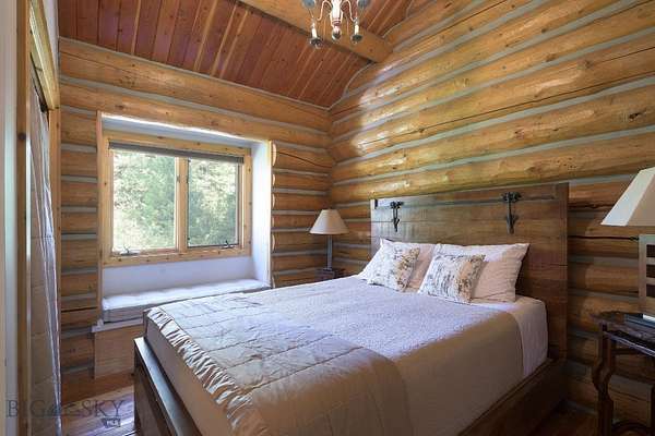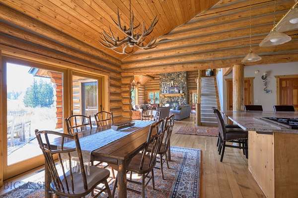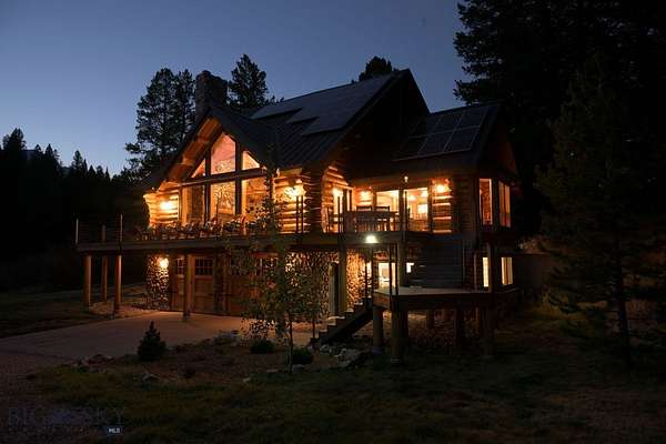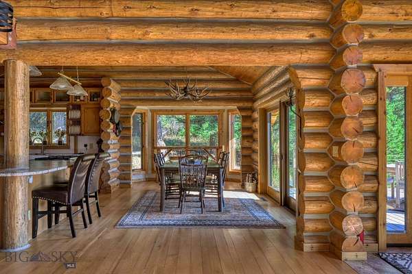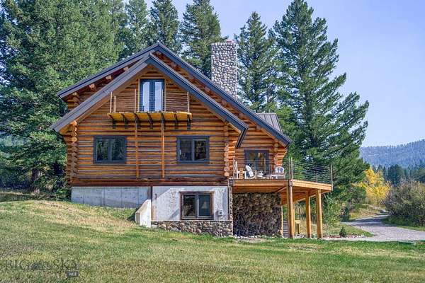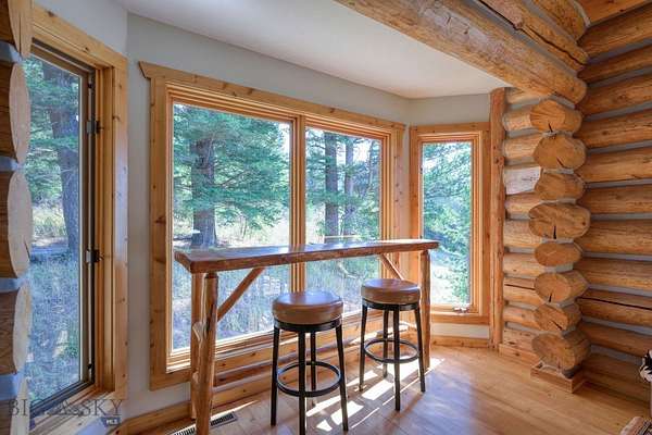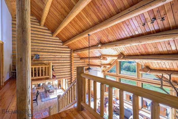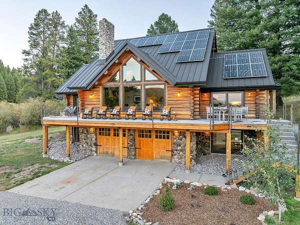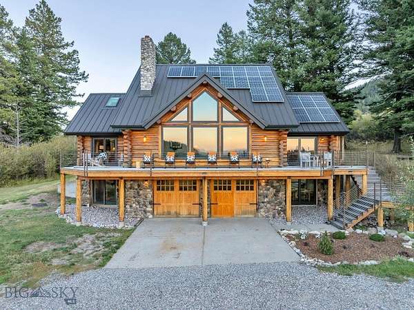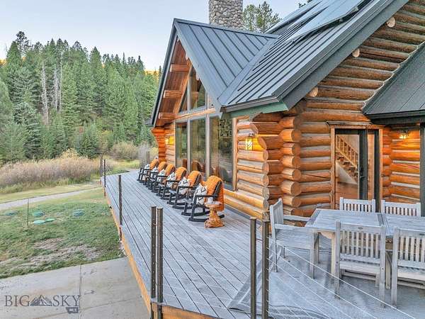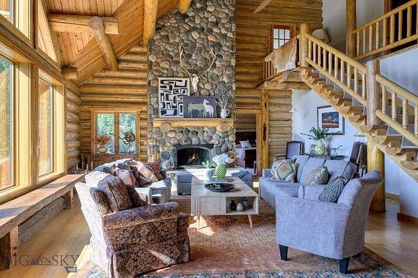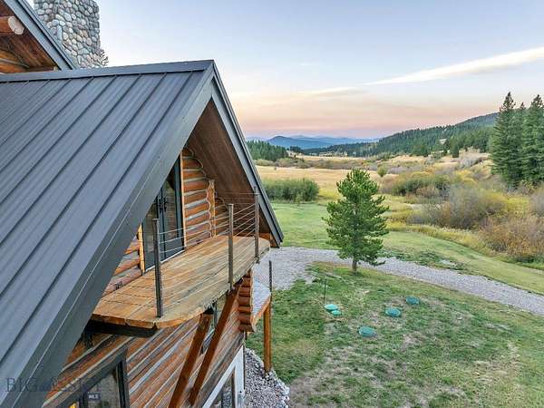 Nestled in the heart of Bridger Canyon, 20 minutes to downtown Bozeman, this Montana mountain log home offers a blend of privacy, craftsmanship, and natural beauty. This 4,498 square foot residence sits on 20.21 acres of Montana wilderness. Over 1000 feet of Bridger Creek meanders over the property - fish for trout outside your front door! Sunlight floods the great room - the heart of the home - is complete with floor-to-ceiling windows, a vaulted ceiling, and a striking fieldstone wood-burning fireplace. The main suite has a wood-burning fireplace, an en-suite bath, walk-in closet, and access to a quiet deck area. The lofted second floor has two bedrooms, a Jack and Jill bath, and an office leading to a pretty Juliet balcony. The walk-out daylight basement has 2 bedrooms, a full bath, family room, and office. Thoughtful updates preserve the authentic character of a mountain log home, adding handcrafted details like the custom-milled red and white oak floors-harvested from the owner's family farm in South Carolina-and New Zealand wool carpeting. The kitchen has been upgraded with Viking and Wolf appliances, leathered granite counters, and a farmhouse sink. Three baths were remodeled adding walk-in glass showers, heated floors, towel warmers, and custom cabinetry. Cedar shingles were replaced with a metal roof, the original deck was rebuilt with new decking, stairs, and railing. Windows, including the large picture wall in the great room, have been replaced to enhance energy efficiency and capitalize on the views. Installing modern infrastructure like 2 new septic systems, solar panels, Generac generator, heat pump, central air, and a new furnace add peace of mind. A bridge crosses the creek to a private trail system for hiking, skiing, or peaceful exploration. A 48' x 36', 2-Story Barndominium, adds value with a main-level shop featuring closed-loop glycol in-floor heat. The unfinished upper level boasts vaulted ceilings, wall of windows, and a 1,300 square foot wraparound deck with breathtaking views. A new separate septic system is in place for future customization of this bonus space. Observe as elk, bear, moose, and other wildlife stop by the creek for a drink. Sipping coffee on the sunny, south-facing deck or setting off on a fly-fishing, skiing, or hiking adventure, this property invites you to slow down and reconnect with nature. Offering rare seclusion with proximity to world-class recreation, this is Montana living at its finest.