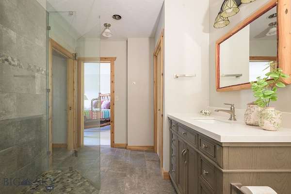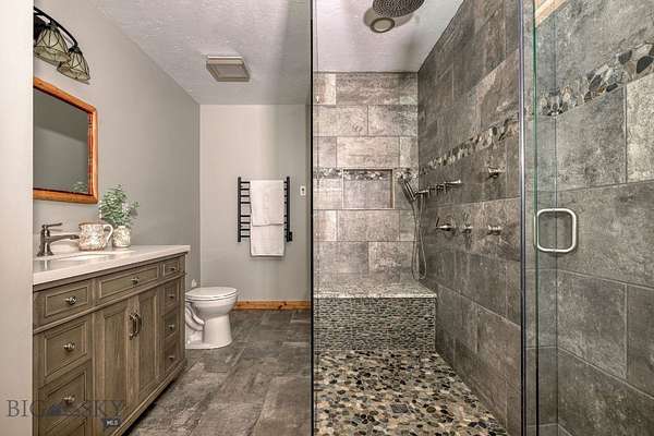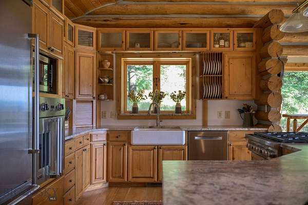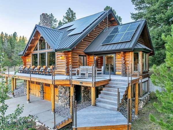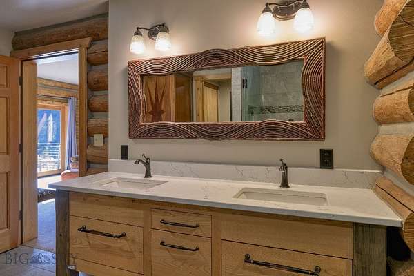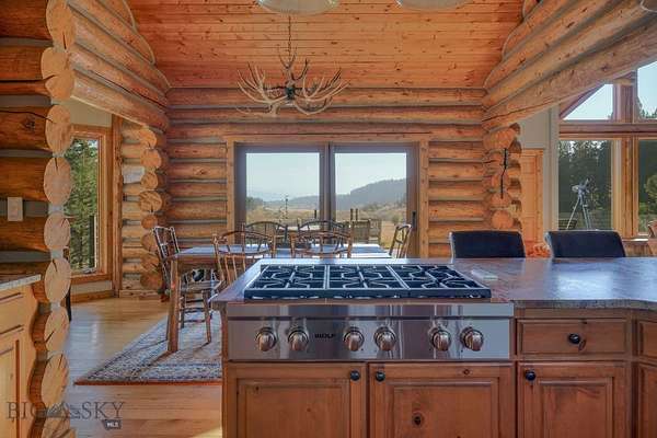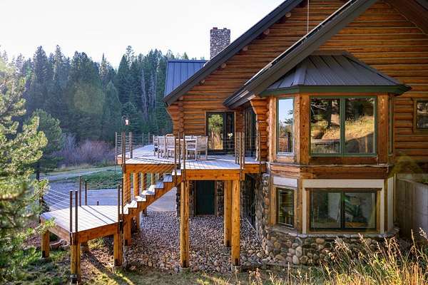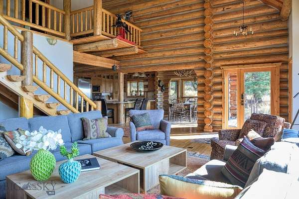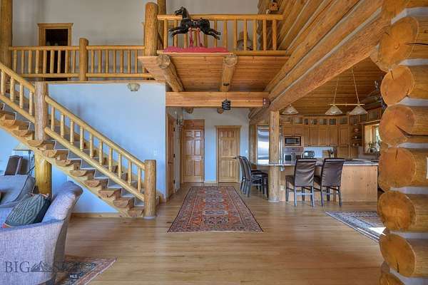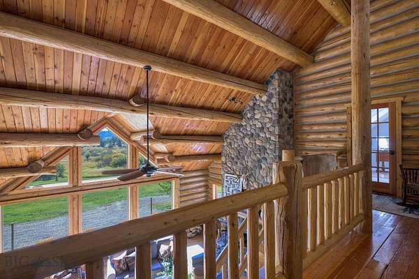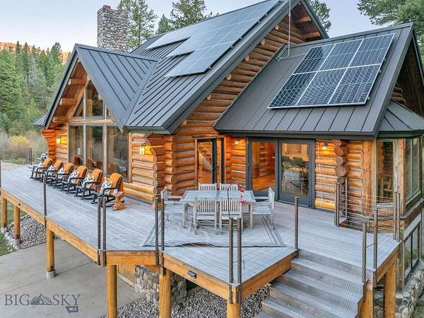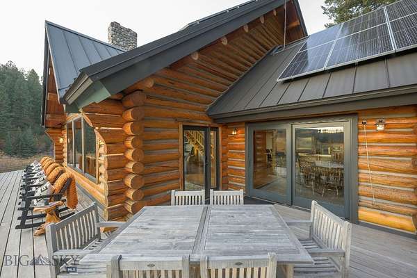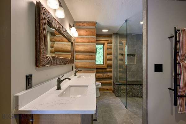 Nestled in the heart of Bridger Canyon, 20 minutes to downtown Bozeman, this Montana mountain log home offers a blend of privacy, craftsmanship, and natural beauty. This 4,498 square foot residence sits on 20.21 acres of Montana wilderness. Over 1000 feet of Bridger Creek meanders over the property - fish for trout outside your front door! Sunlight floods the great room - the heart of the home - is complete with floor-to-ceiling windows, a vaulted ceiling, and a striking fieldstone wood-burning fireplace. The main suite has a wood-burning fireplace, an en-suite bath, walk-in closet, and access to a quiet deck area. The lofted second floor has two bedrooms, a Jack and Jill bath, and an office leading to a pretty Juliet balcony. The walk-out daylight basement has 2 bedrooms, a full bath, family room, and office. Thoughtful updates preserve the authentic character of a mountain log home, adding handcrafted details like the custom-milled red and white oak floors-harvested from the owner's family farm in South Carolina-and New Zealand wool carpeting. The kitchen has been upgraded with Viking and Wolf appliances, leathered granite counters, and a farmhouse sink. Three baths were remodeled adding walk-in glass showers, heated floors, towel warmers, and custom cabinetry. Cedar shingles were replaced with a metal roof, the original deck was rebuilt with new decking, stairs, and railing. Windows, including the large picture wall in the great room, have been replaced to enhance energy efficiency and capitalize on the views. Installing modern infrastructure like 2 new septic systems, solar panels, Generac generator, heat pump, central air, and a new furnace add peace of mind. A bridge crosses the creek to a private trail system for hiking, skiing, or peaceful exploration. A 48' x 36', 2-Story Barndominium, adds value with a main-level shop featuring closed-loop glycol in-floor heat. The unfinished upper level boasts vaulted ceilings, wall of windows, and a 1,300 square foot wraparound deck with breathtaking views. A new separate septic system is in place for future customization of this bonus space. Observe as elk, bear, moose, and other wildlife stop by the creek for a drink. Sipping coffee on the sunny, south-facing deck or setting off on a fly-fishing, skiing, or hiking adventure, this property invites you to slow down and reconnect with nature. Offering rare seclusion with proximity to world-class recreation, this is Montana living at its finest.