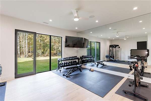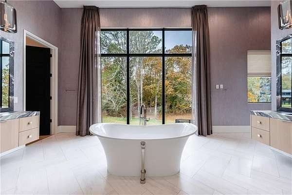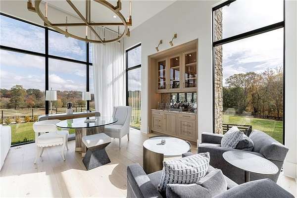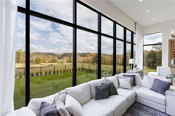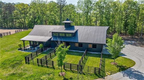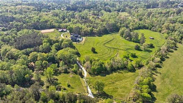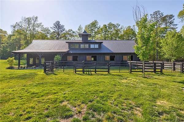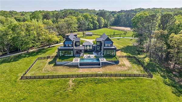 This stunning Milton estate combines privacy, modern farmhouse elegance and sweeping views in one extraordinary offering. The six-bedroom, six- and two-half-bathroom home-one of the last designed by Bill Harrison-and its state-of-the-art barn and greenhouse are tucked at the heart of 50 private acres, surrounded by fenced pastures, mature trees and two streams. The seven-stall barn and oversized arena features run-outs, a tack room, an office, a wash rack and a thoughtfully appointed break room. Suitable for a luxury wellness retreat, a private estate or a multi-use compound, this contemporary masterpiece offers 10,000+/- square feet of flexible living space. Inside, unrestricted living spaces unfold beneath 14-foot ceilings, where floor-to-ceiling aluminum-framed windows allow natural light to showcase high-end interior finishes. Two dramatic floating staircases double as architectural statements. The expansive grounds easily accommodate equestrian pursuits, formal gardens or private event spaces, with patios and balconies that immerse guests in the surrounding beauty. The PebbleTec infinity-edge pool with a sun ledge and spa provides a stunning focal point for those seeking bespoke entertaining spaces, and a full fitness and indoor spa suite caters to health-minded owners. Welcome to 14200 Hopewell Road located only 5 minutes from Historic Downtown Alpharetta!