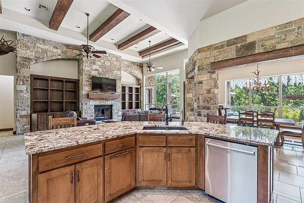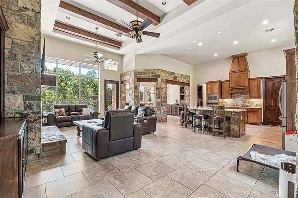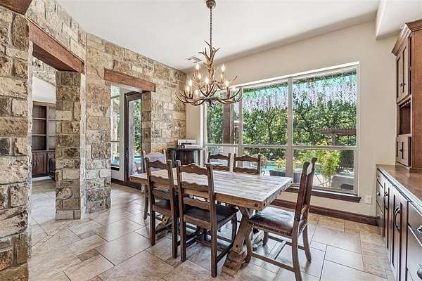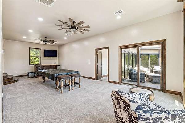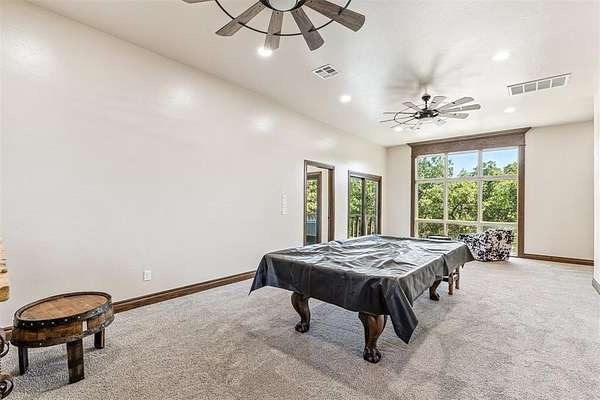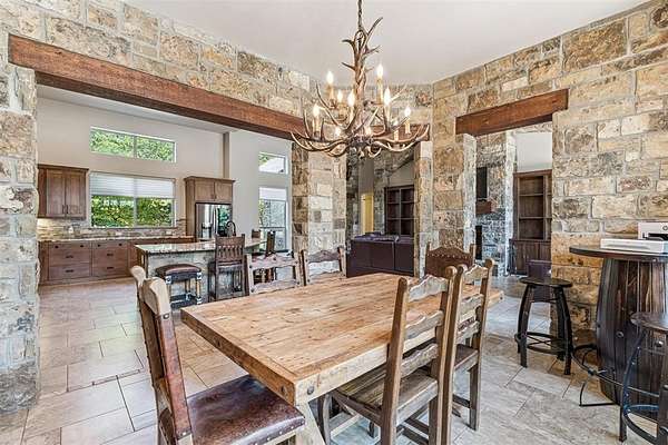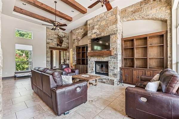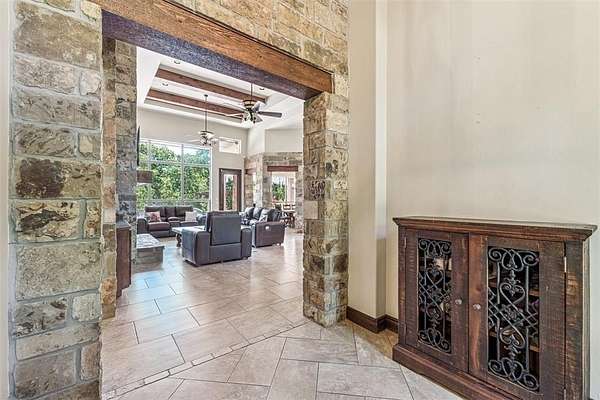 Inside, you'll find elegant finishes and thoughtful upgrades throughout. The newly added theater room and game room make this home an entertainer's dream. The living room showcases a beautiful rock fireplace, and a Sonos sound system seamlessly connects indoor and outdoor audio.