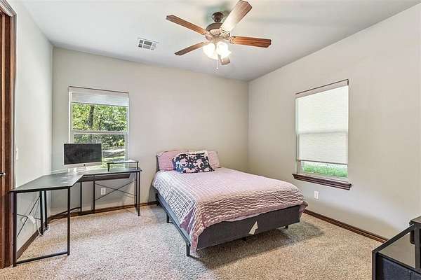 Perfect for pet lovers, the home includes a dedicated dog room with a shower, exterior doggy door, and fenced outdoor dog area.