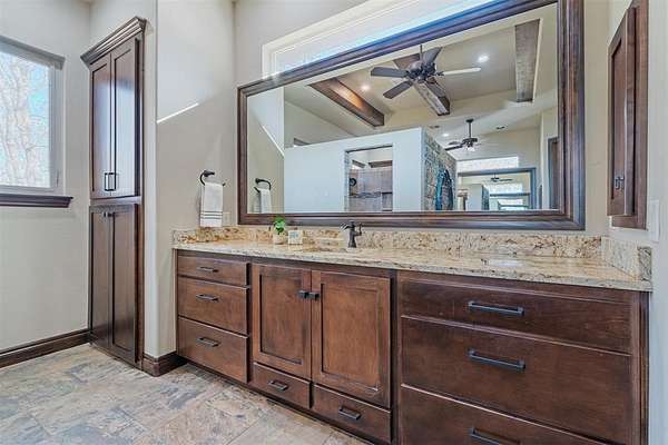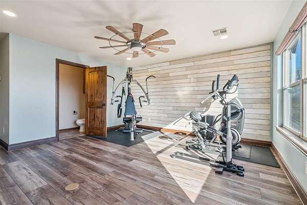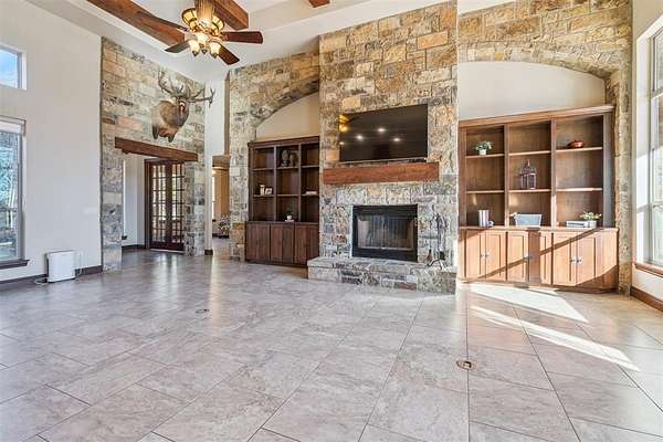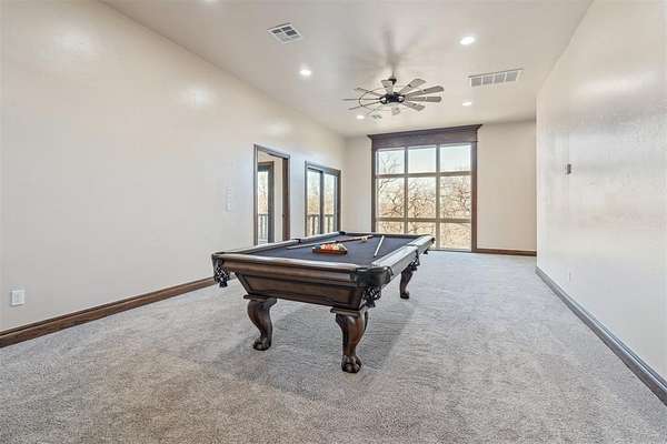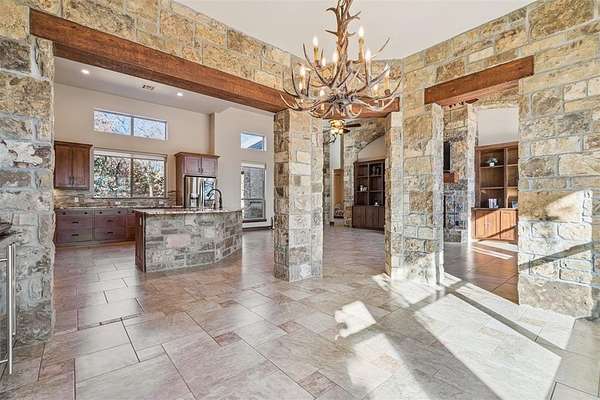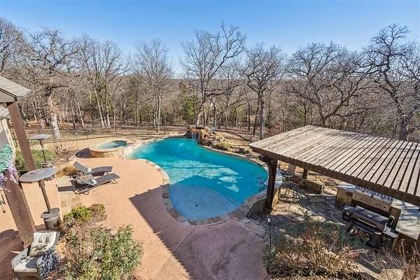 Stop searching- you found it!! Your private retreat from everyday life. Located on 6+ acres in the gorgeous- rolling hills community of Hickory Hills. Step inside and you are welcomed by a spacious entry with beautiful stone accents that continue throughout the home. To the left is an office with glass double doors and a bay window. Ahead is the great room with floor to ceiling windows that flood the space with natural light and provide a gorgeous view. The majestic stone fireplace leads your eyes to the cathedral ceiling with heavy wooden beams. The great room is open to the kitchen with granite counter tops, large walk-in pantry, gas stove top, and stainless-steel appliances. The dining room offers a built-in bar and wine frig. The private main suite is pure luxury offering separate vanities, soaking tub, double walk-in shower, and the closet of your dreams. On the east wing are 2 more bedrooms with jack-n-jill-bath. mudroom, pool shower, and half bath. Upstairs is a workout room, game room, and theatre room. Step out on to the balcony and take in your view- that includes a gorgeous pool with hot tub and waterfall where you can swim up to the bar of your outdoor kitchen. This is the spot- take it in-you are home.