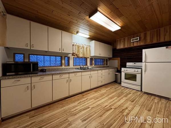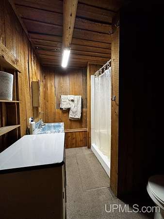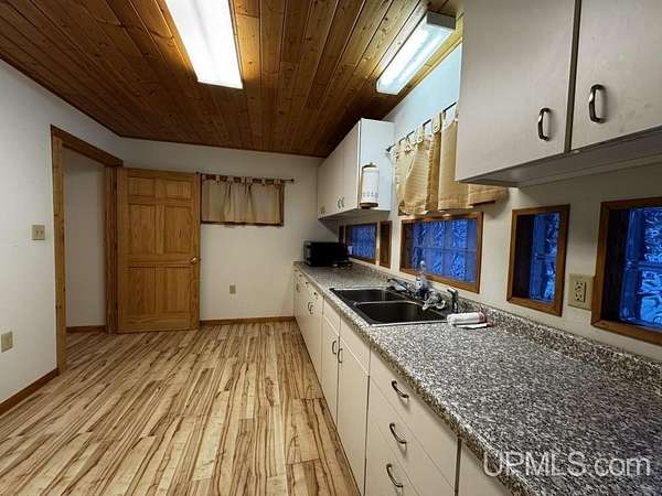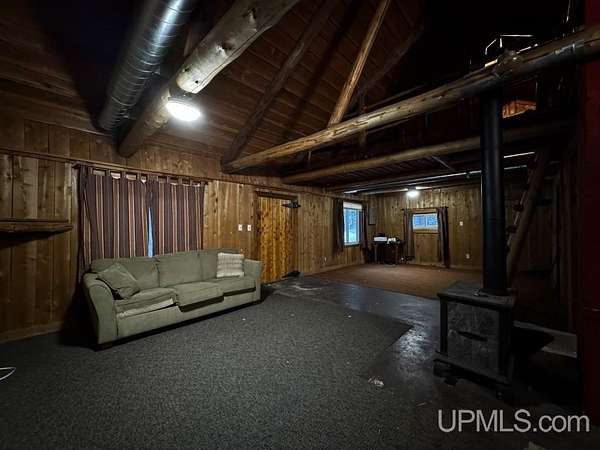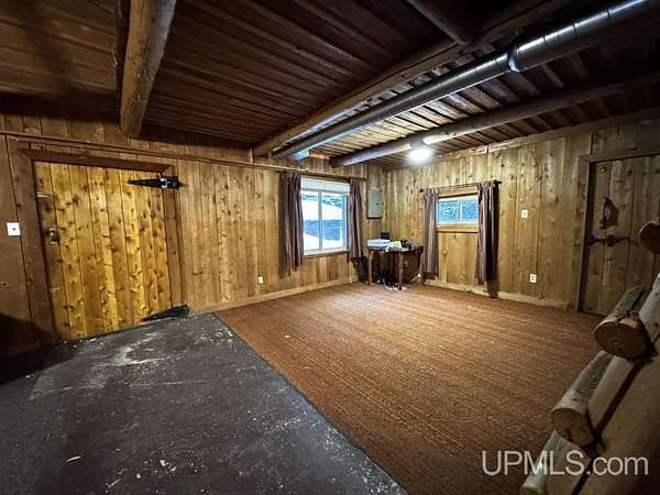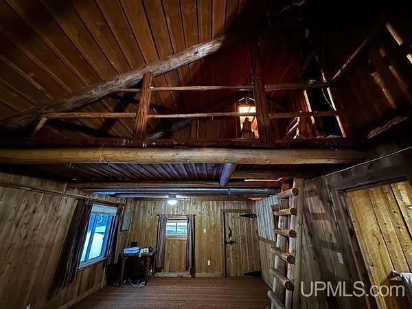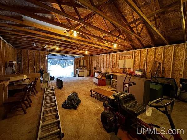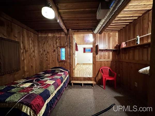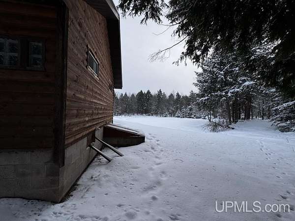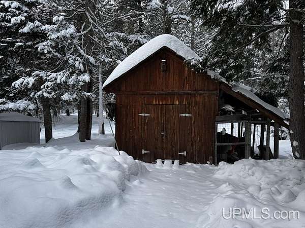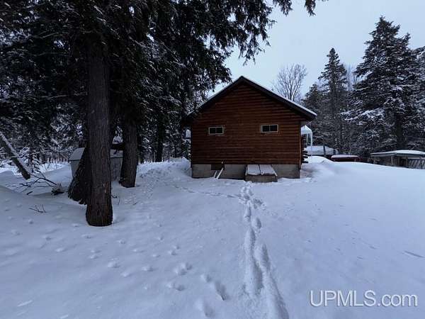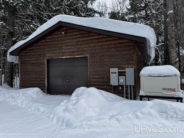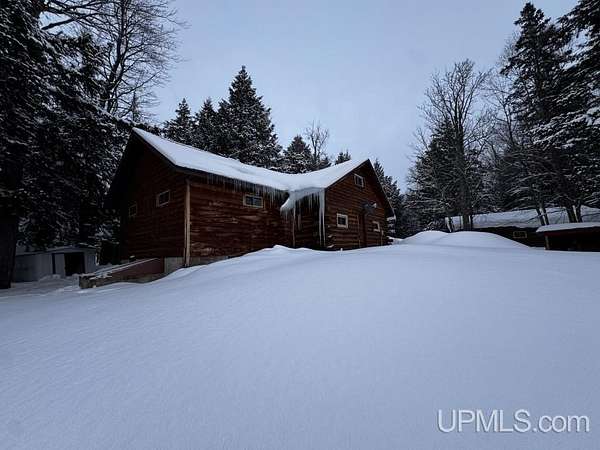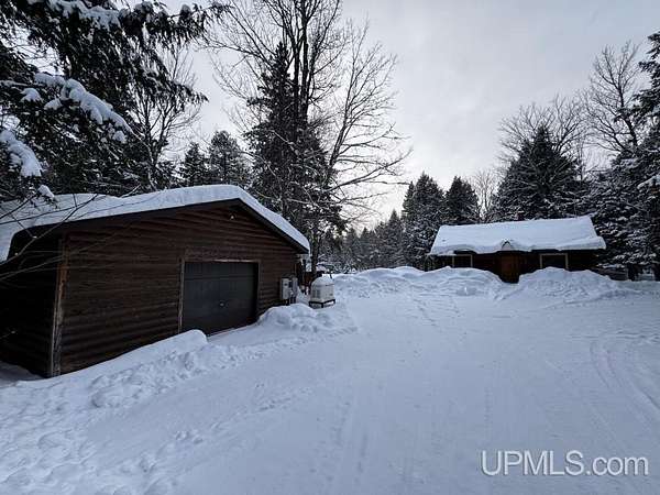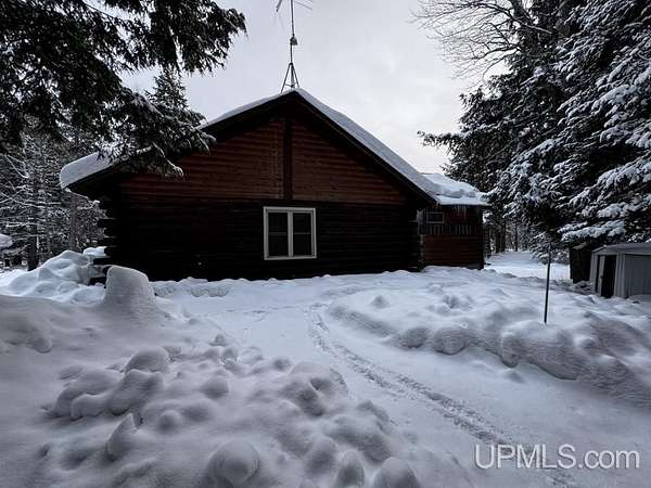 Tucked back at the end of a long, tree-covered drive, this rustic log cabin sits right in the heart of the property and offers the true "Up North" escape everyone's chasing. The 30x26 log cabin features an open living area, full bathroom, loft, and private bedroom, with a 320 sq ft addition added in 2007 that serves as the kitchen area and offers flexibility for a dining space or extra sleeping area. A detached 24x36 log-sided garage (2007) with concrete slab and power is perfect for storing toys, tools, and gear. Thoughtfully equipped with underground power, geothermal heating and cooling, and a Generac generator, this property is built for comfort and reliability year-round. The ultimate cabin-in-the-woods experience in Michigan's Upper Peninsula! Enjoy year-round access, underground utilities, well and septic, phone service, and high-speed fiber internet--rare for a remote getaway. The property adjoins over 2,500 acres of State of Michigan land, giving you unlimited access to hunt, hike, and explore right out your back door. Located near ATV and snowmobile Trail #14--ride straight from camp. Close to Mt. Arvon, waterfalls, Witz Marina, Lake Superior, Fins Bar & Grill, and Huron Bay Trading Post. A rare opportunity to own a private UP retreat with modern systems!