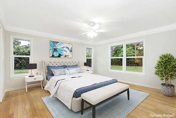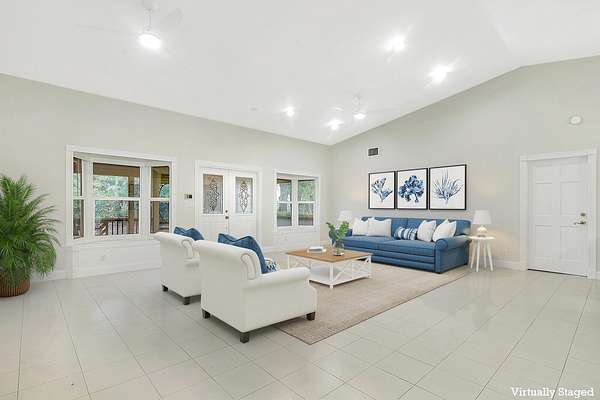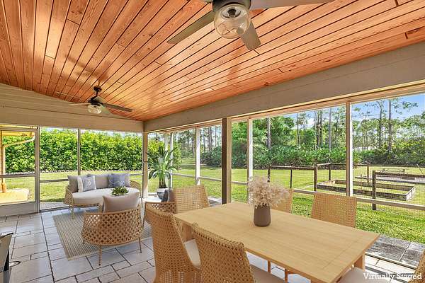 A nature lovers dream come true. This 4/3 ranch style home located in the quiet equestrian community of Caloosa, is situated on a cul-de-sac, adding extra privacy. Lush and mature landscaping greets you as you enter the fully fenced and gated property. Great room is perfect for all gatherings! Four bedrooms and three full baths. Ceramic tile though out main living area, oak wood flooring in all bedrooms.. The primary bedroom includes a walk-in closet with built ins, primary bath has a roman tub, separate shower and double vanity. Large front porch and large back patio! Entire house has hurricane impact glass windows and sliding glass door. Full house generator. Cement Paved driveway with custom gates. No horses allowed on property. Owner will allow dogs with approval. Long Term Available