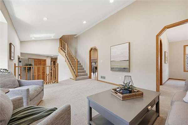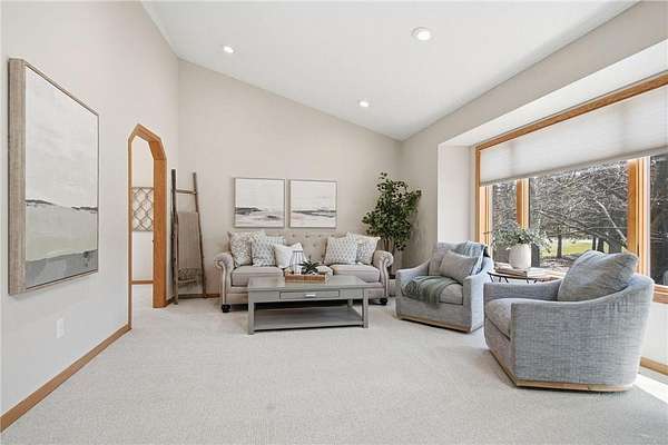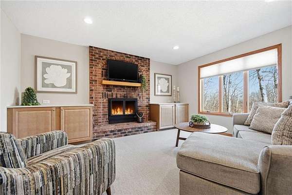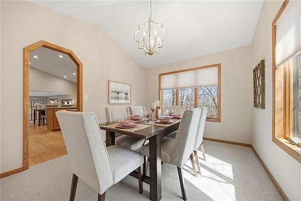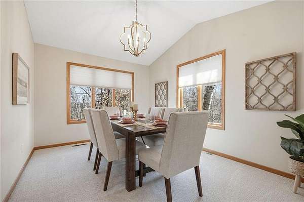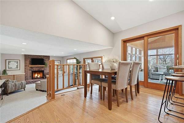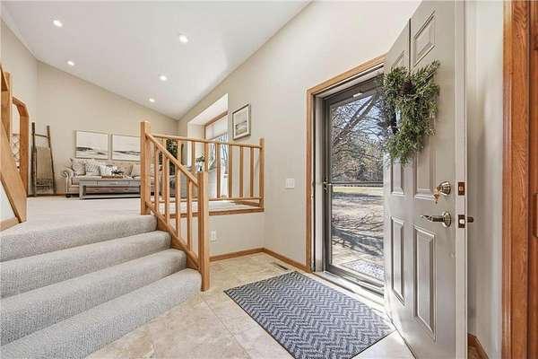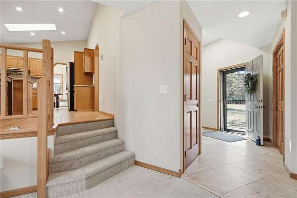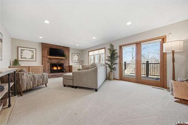 The main floor entry is inviting and spacious and opens to your main floor living spaces. The main floor is a perfect blend of function and flow and features a large, vaulted living room, both formal and informal dining spaces, family room with a brick surround wood-burning fireplace and walks out to your private deck & 3 season porch. The views and natural setting of the 3-season porch are tranquil and inviting.