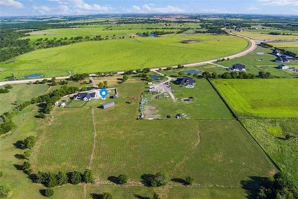Set on 13.23 acres of pristine, fully fenced land, this modern ranch estate delivers a rare blend of sophistication, privacy, and practicality--complete with an agricultural exemption for significant tax savings. Designed for both elegance and function, the home showcases seamless indoor-outdoor living framed by expansive views of rolling hills and serene water features.
