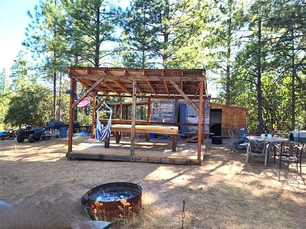 This property is a must see. Are you looking for a great place to vacation and make memories with your family? Or a great place to build your forever home? Get away from the hustle and bustle of city life and escape to this beautiful piece of land. Offering the feel of seclusion. This property has a working well, a shop that is ready for entertaining. Equipped with a large custom built dining table and bunk beds. The pipe has been installed and is ready for you to build your bathroom. There is a shed that also has bunk beds and a queen size bed. There's even a little A frame playhouse for the kids. There's a little zipline for the kids and a custom-built ping pong table for the entire family to enjoy. There is an outdoor shower and an outhouse. The current owner used a generator to run the well, there are solar lights that create a relaxing ambiance. This property sits at about 3000 feet in elevation.