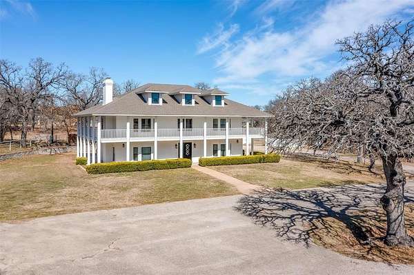 Stunning multi-generational estate on 6 Acres in the heart of Weatherford with convenient access to Fort Worth. Designed for extended families, the 4,082 sq ft main residence with two master bedrooms with en-suite bathrooms, has an additional 992 sq foot 992 sq ft 1 bedroom, 1 bath, 1 car attached garage guest home with a separate kitchen. Bring your extended family or lease this guest home for additional income. The gourmet kitchen in the main residence is a chef's dream, showcasing commercial-grade appliances, a generous island, wine cooler, and sleek modern finishes-ideal for entertaining and everyday living. The primary suite downstairs in the main residence has a cozy fireplace, spa-inspired walk-in shower, dual vanities, and two expansive walk-in closets-one with glass doors for added convenience. Upstairs, the second primary suite offers a retreat of its own, complete with heated bathroom floors, a custom walk-in closet with built-in jewelry case, and ample shelving. Two additional upstairs bedrooms share a beautifully appointed bath. The dedicated study-office is features solid wood paneling and bookshelves and features a large fireplace. Outside, a gated entrance leads past a pond to the main home, framed by mature trees in a park-like setting. The pipe fencing and cross-fencing make it horse friendly, and the resurfaced pool is fully fenced for safety and your smaller animals. This rare gem combines security, functionality, and high-end finishes. Whether hosting large gatherings or enjoying moments by the pool, this extraordinary property offers a lifestyle of comfort, luxury, and high end finishes rarely seen today. Primary Home, garage, and guest home will be getting a new roof. We can share a property appraisal with you and schedule a showing upon request.