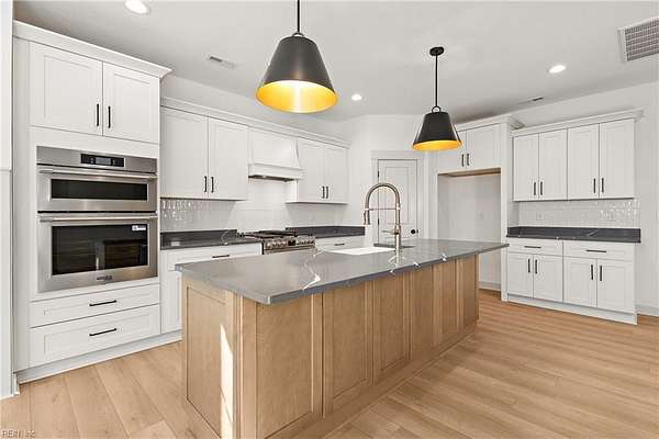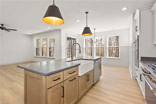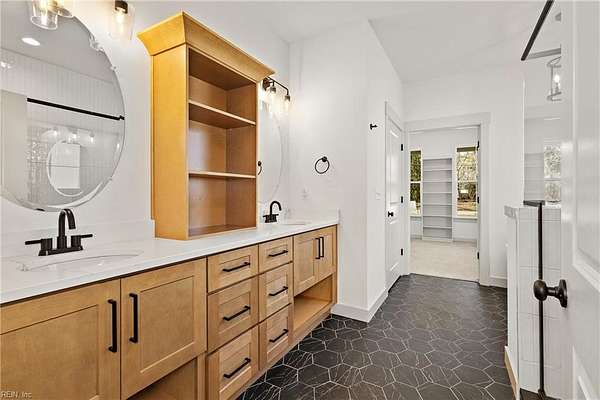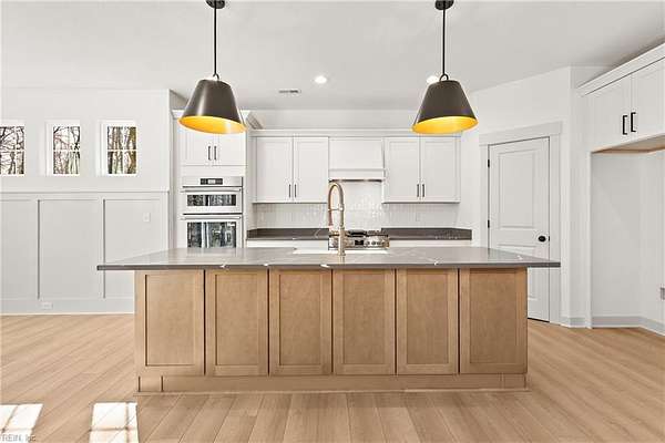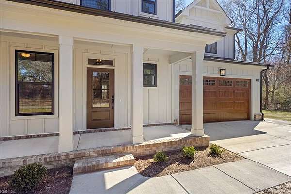 1421 Saint Brides Rd West, the Ashbee Model by Wetherington Homes. March 2026 completion date. Situated on a wooded and private 16+ acre parcel in Southern Chesapeake, this spacious and open concept floorplan offers 4 bedrooms PLUS AN OFFICE AND A LOFT! Great Room opens to Kitchen with center island with overhang for extra seating, dining area, quartz counters, tile backsplash, pantry, and stainless appliances. First Floor Owner's Suite features extra large walk in closet with wood shelving and full bath with tile surround step in shower, soaking tub, tile flooring, vanity with double bowls and quartz counters, linen and water closets. You will love the Covered Porch to enjoy the peaceful wooded setting! Add'l details: LVP flooring on 1st floor; wood treads on stairs; carpeting in all bedrooms; quartz counters in full baths; 1st floor Laundry Room; Mud Room with drop zone; craftsman style doors & trim; Front Porch; 2 car garage; and much more!
