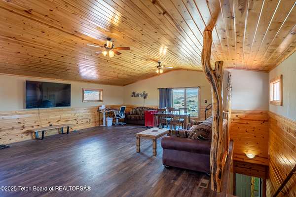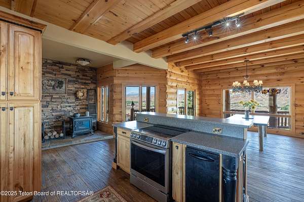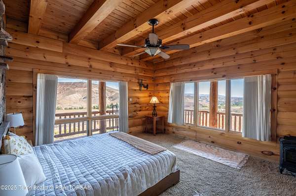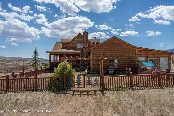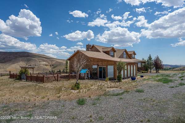 A Western Dream Realized: Handcrafted Log Home Estate with Panoramic Vistas Perched above the winding Wind River with commanding 360-degree mountain views, this bespoke log home is a masterwork of rustic elegance and timeless Western craftsmanship. Located in the sought-after Warm Springs Addition, just minutes from the Dubois Airport, this extraordinary residence is set on 8.5 private, fenced acres-an architectural gem in the heart of Wyoming's untamed beauty. Constructed from hand-hewn North Carolina logs, the home blends artistry with function. At its heart, a hand-carved, three-foot-wide log post anchors the open-concept kitchen, dining, and grand room-an expansive glass-wrapped sanctuary that invites the outdoors in. White oak floors flow throughout, while three stone fireplaces and woodstoves create warm gathering spaces during crisp mountain evenings. The sunroom, complete with a private hot tub, opens onto an expansive deckperfect for entertaining or quiet contemplation beneath Wyoming's legendary skies. The primary suite is a true retreat, featuring a dramatic rock wall bed backdrop and luxurious finishes. Additional features include a hydroponic greenhouse, oversized shop/garage, hay barn with fenced paddocks, and a separate 800 sq. ft. apartmentideal for guests, caretakers, or income potential. Storage is abundant, and every inch of the property reflects meticulous care and thoughtful design. This property is not just a homeit's an invitation to live the elevated Western lifestyle most only dream about.