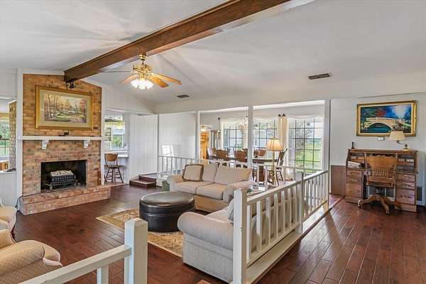 Perched high on a hilltop, the charming 2-bedroom, 2-bath home (approximately 2,108 sq ft) sits proudly with breathtaking 360-degree panoramic views. From the front porch, enjoy sweeping vistas across the land while watching visitors approach from the gated entrance along the long, scenic driveway. It's an absolute dream for those seeking peaceful country living with room to breathe.