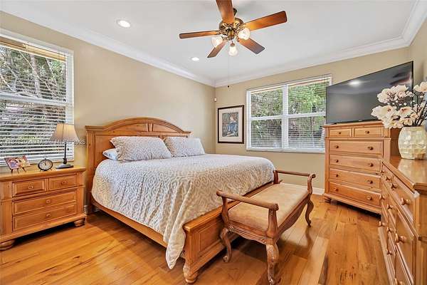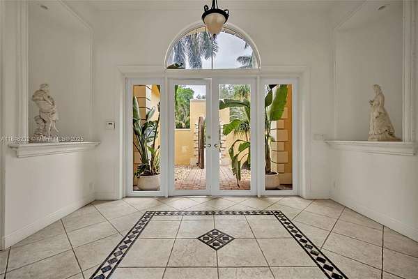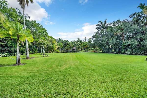 Gated 2.24 acre estate in exclusive Sunshine Ranches offering unmatched privacy, space, and tropical luxury. This 7 bedroom, 6.5 bath hacienda style residence (including a den) also features a separate office, wood and tile flooring, crown molding, and generous living areas filled with natural light. The fully fenced grounds are a true tropical paradise professionally landscaped with over $300K in mature palms, exotic plants, and fruit trees, plus over $20K in custom outdoor lighting. Outdoor highlights include an expansive travertine deck, scenic walking trails, and a tiki hut overlooking a serene private lagoon. Additional features include a 4 car garage, whole house generator, 500 gallon underground propane tank, and security cameras. A rare find in prestigious Southwest Ranches.