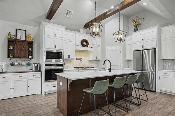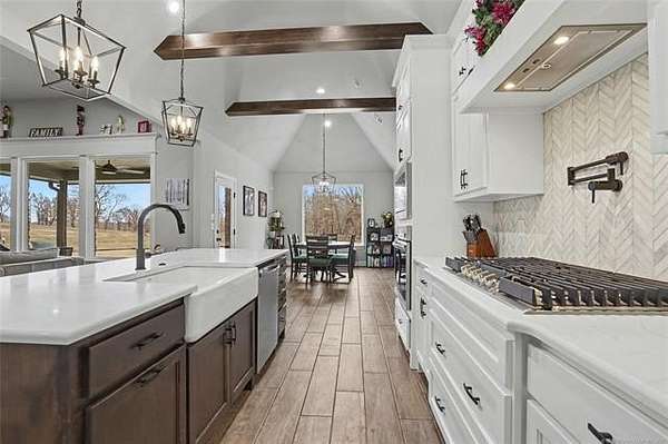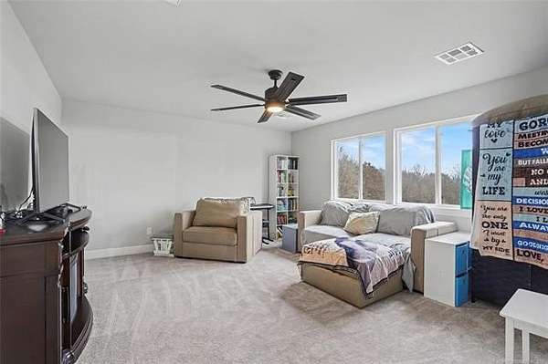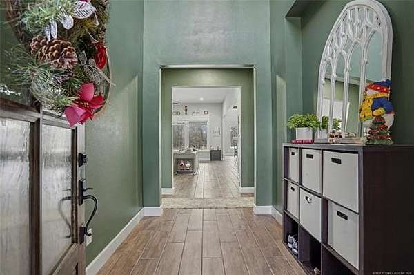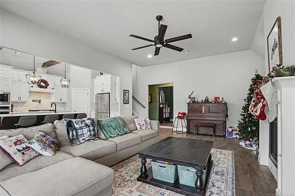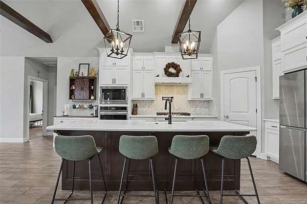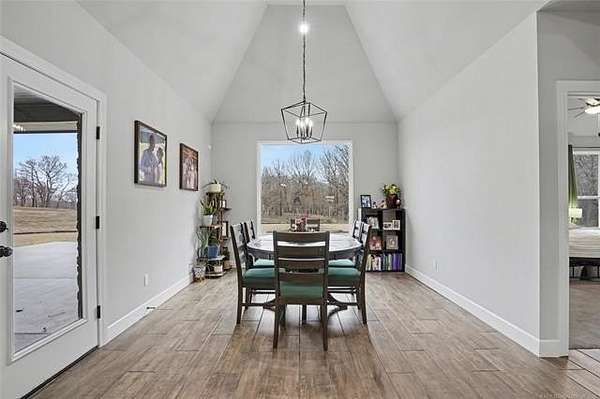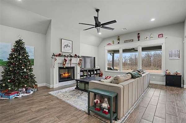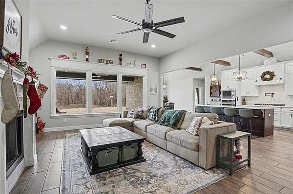 Experience peaceful country living with convenience just minutes away. Built in 2023, this beautiful 2 year old home sits on 2 Acres and is only about 8 minutes from the Creek Turnpike and 7 minutes to Highway 51, keeping you close to schools, shopping, and town amenities while enjoying the privacy of a rural setting. Inside the open concept layout includes quartz countertops, a large kitchen island, and a gas fireplace for cozy evenings. A big picture window at the dining area overlooks the acreage, and the living room features rear windows with views of the pond. Step onto the covered back patio to relax, take in the scenery, and watch wildlife. A versatile second living area upstairs provides space for a kids playroom, media room, or additional family room. Quiet mornings with a view of a .75 acre pond, room to grow, and easy access to major routes make this a rare opportunity for acreage close to town. Additional land available.