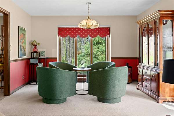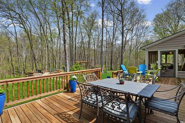 Escape to your own private sanctuary in the prestigious Kings Ridge neighborhood with this stunning 4-bedroom, 3.5 bath ranch, perfectly situated on a lush 2.17-acre wooded lot. Offering an impressive 4,033 sqft of finished living space, this home seamlessly blends traditional elegance with modern comfort. The main level greets you with soaring vaulted ceilings and a magnificent floor-to-ceiling brick fireplace, complemented by a chef’s kitchen featuring rich cabinetry, quartz countertops, and a double wall oven. Retreat to the primary suite, which offers a spa-inspired bathroom and direct access to the expansive rear deck overlooking your secluded backyard. The possibilities for entertainment continue in the fully finished basement, complete with a welcoming Buck stove, a built-in brick bar, and ample space for a home theater or gym. From the sun-drenched screened porch to the meticulously manicured grounds, every inch of this estate is designed for high-end relaxation and effortless entertaining.