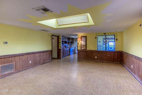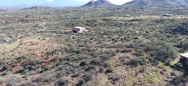 Amazing home on 20 acres is nestled in the Santa Foothills with lush Sonoran Desert adjoining the Coronado National Forest. Over 4000' elevation with panoramic views of mountains, sunsets and city lights. Solid masonry construction with expansive wrap around screened-in porch with wood burning stove and billiard area. Large living room with high wood beamed ceiling, fireplace and picture windows accessible from front entry and kitchen. Open family room lead to bedrooms. Huge walk-in pantry, Lots of storage area including the basement. Primary bedroom has private large covered patio. Laundry room also has shower stall. 3-car garage with work benches. 20 Acres includes Two parcels, home on 5 acres and adjoining 15 acres with many beautiful building sites. Plenty of room to expand. Zoning allows for one house per 5 acres. Solid masonry construction and needs a little TLC and updating and well worth it!