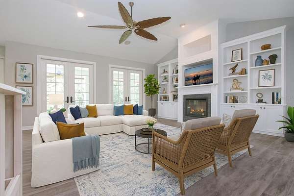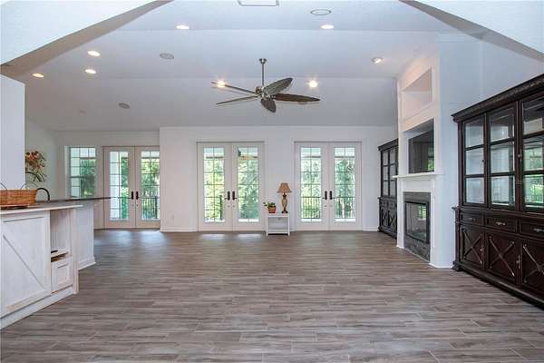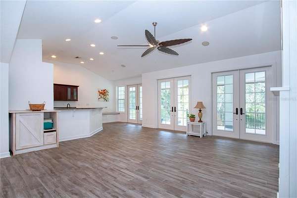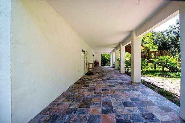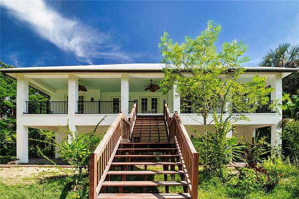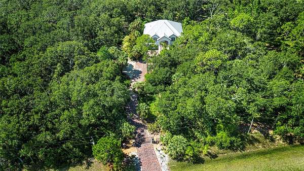 One or more photo(s) has been virtually staged. HONEY! STOP THE CAR! THE PRICE IS REDUCED! Experience the tranquility of this KEY WEST STYLE ESTATE HOME, situated on an expansive FOUR AND A HALF ACRES IN AN X FLOOD ZONE within the sought after COMMUNITY OF SUNDANCE. As you proceed through the stone pillars and GATED ENTRANCE along the paved driveway of this estate, you will be impressed by its distinguished presence. From the stone staircase and beautifully etched front door, which serves as the prominent focal point to the ornate metal roof and balcony off the back of this home that captures tons of serene wildlife. The property features 3,600 HEATED square feet of thoughtfully designed interior living space, complemented by an ADDITIONAL 2,000 square feet of covered outdoor area. This residence offers FOUR BEDROOMS, THREE FULL BATHROOMS, and includes a TWO CAR ATTACHED GARAGE. The first floor features a space that could READILY CONVERTED INTO AN IN-LAW APARTMENT, complete with a spacious bedroom, living area, and FRENCH DOORS OPENING TO A COVERD PATIO. This area includes a full bathroom, a private entrance to the garage, and separate access to the main living area upstairs. Upon ascending the stairs, you are greeted by an expansive OPEN CONCEPR KITCHEN LIVINGROOM COMBO area featuring a wall of distinguished French doors that have views of the backyard and PROVIDES ACCESS TO THE 50 FT BALCONY with ELEGANT IRON RAILINGS. The kitchen is thoughtfully designed with GRANITE COUNTER TOPS AND STAINLESS STEEL APPLIANCES, custom cabinetry, and a generous walk-in pantry, complemented by a breakfast nook and breakfast bar. The spacious living room, complete with CUSTOM BUILT IN'S, VAULTED CEILING offers a refined environment for relaxation. Adjacent to the kitchen, A FORMAL DINING AREA presents scenic views of the tranquil front yard. The PRIMARY BEDROOM offers an EQUISITE BATHROOM, a spacious walk-in closet, and scenic views of nature through FRENCH DOORS THAT OPEN TO THE BALCONY. With this SPLIT FLOOR PLAN, the opposite side of the home features two additional bedrooms, a guest bathroom, and a laundry room. SUNDANCE is an exclusiveRIVERFRONT AND EQUESTION COMMUNITY featuring a PRIVATE MARINA AND BOAT LAUNCH. Residents enjoy access to TWO DOCKS equipped with running water and electricity, situated on the LITTLE MANATEE RIVER JUST MINUTES FROM THE BAY. This community includes a BARN with 20 STALLS and 9 PADDOCKS, adjacent to the LITTLE MANATEE STATE PARK, which features extensive riding trails. There is also a COMMUNITY PARK covering THREE ACRES at the front of the community. The community organizes several annual events, including a Halloween party, a spring picnic, and parades during Christmas involving horses and golf carts. All for only $241 Annually. Do not pass up this amazing opportunity to love where you live. CALL FOR A PRIVATE SHOWING TODAY! Metal shed does not convey