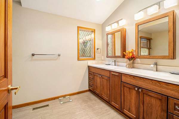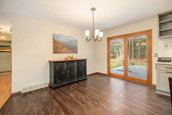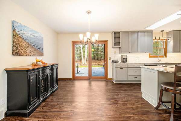Easy living in this lovely home on 2 lots, just under 2 acres in Filer Township on a cul-de-sac in Meadow Woods subdivision. This home offers 3 bedroom, 2 full bath with main floor laundry an oversized garage and many upgrades. The kitchen and bathrooms are recently updated with beautiful quartz countertops, soft close custom cabinets with many inserts and built-in features. The large kitchen with big island, flows into a nice size breakfast area that overlooks the spacious privately wooded backyard, just beyond the expansive 20 x 18 deck. The inviting front porch and deck are built out of no-maintenance decking. Wood flooring in living room and primary bedroom. Luxury vinyl flooring located in other areas. Split bedroom plan, with the large primary bedroom having a vaulted ceiling, an oversized walk-in closet and large bathroom with walk-in tiled shower. The skylight in bathroom and kitchen bring in lots of natural light. The full basement is partially finished, and provides lots of extra room for storage or a workshop. Outside you will enjoy all the beautiful peaceful scenery. There is also a 15 x 24 shed with a metal roof, located on a concrete slab. A great place for that mower or bikes. Call agent to view today and begin peaceful living.