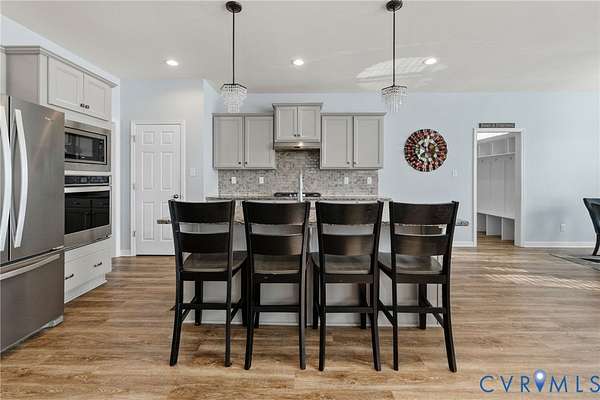 Welcome to this beautifully appointed home in the desirable Glebe Point community, offering 5 bedrooms, 3 full baths, and 2,993 square feet of thoughtfully designed living space. Step inside to a welcoming foyer flanked by a formal dining room, filled with abundant natural light, perfect for hosting gatherings and special occasions. Continue into the gourmet kitchen, where style meets function with granite countertops, a large center island with bar seating, gas cooktop, wall of stainless steel appliances, and a spacious pantry. The adjacent breakfast nook overlooks the private backyard, creating the perfect spot for casual dining. Just off the kitchen, a convenient mudroom with built-in drop zone provides everyday organization and offers direct access to the two-car garage. The expansive family room features recessed lighting and centers around a cozy gas fireplace with decorative mantle, creating a warm and inviting gathering space. A first-floor bedroom with plush carpet offers flexibility for guests or multi-generational living and has adjacent access to a full bath with a tub/shower combination. Upstairs, retreat to the spacious primary suite featuring carpet, ceiling fan, and a large walk-in closet. The en suite bath is designed for relaxation with dual vanities, tile flooring, a garden tub, and a walk-in shower with glass enclosure. Three additional bedrooms each offer plush carpet, ceiling fans, and oversized closets. A convenient second-floor laundry room with built-in shelving adds practicality to daily living. Additional highlights include fresh paint, pull-down attic storage, providing ample space for seasonal items and more. Step outside to enjoy a private backyard backing to wooded views, offering peaceful surroundings and added privacy. The detached deck provides the perfect space for outdoor entertaining, grilling, or simply relaxing. This exceptional home blends space, comfort, and privacy in the sought-after Glebe Point community, ready to welcome you home.