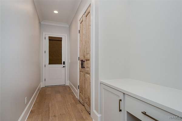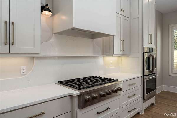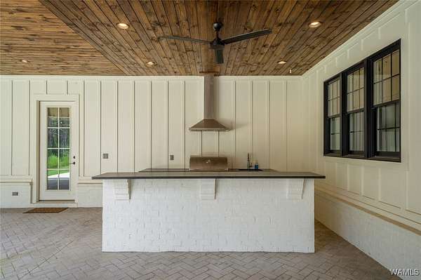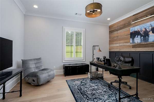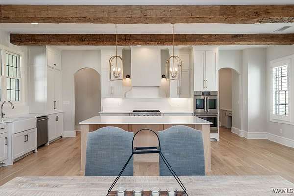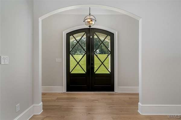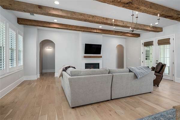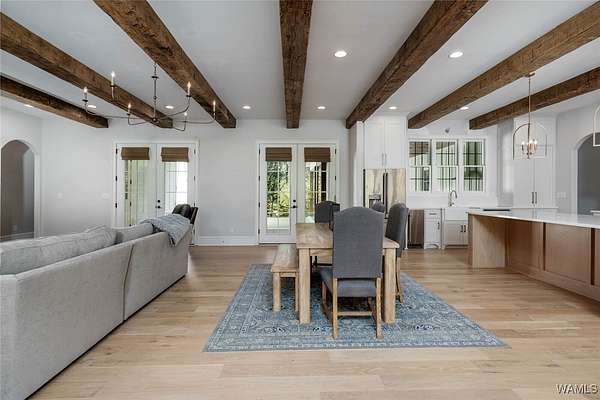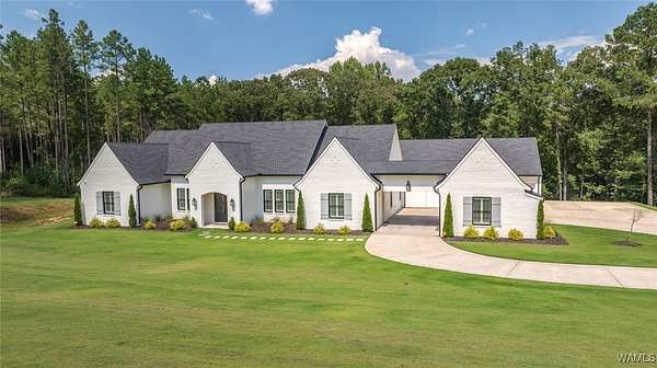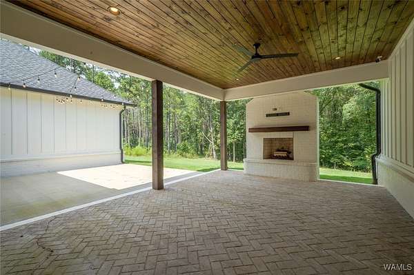Experience elevated living in this remarkable custom home surrounded by 6.7 wooded acres. Authentic Barnwood beams warm the open concept main living area with gas fireplace. A modern kitchen with nugget icemaker is ideal for entertaining guests, with a large walk-in pantry. The covered back patio is equipped with an outdoor kitchen and wood burning fireplace. A porte cochere leads to a climate controlled fourth garage with half bath ideal for a studio or gym. The large master suite offers a walk in closet with convenient laundry access. Enjoy 3 additional bedrooms, one with a built in safe room/storm shelter. A large bonus room with cathedral ceilings sits in the back of the home with an adjoining hunters closet. This home includes a full security system with 24/7 surveillance in the lovely neighborhood of Watercolor.