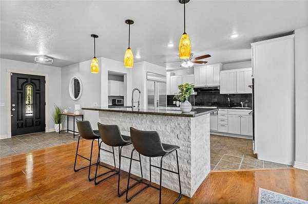 Discover this beautiful 4bed, 4bath home in a peaceful, wooded setting. This multi-level home offers space, functionality, and comfort. Inside, enjoy an open-concept living room and kitchen with a large walk in pantry, perfect for entertaining. The main floor also features a sunroom, a bedroom, full bathroom, and a dedicated home office. Upstairs, enjoy a spacious primary suite with a luxury walk-in closet and private ensuite bath. You'll also find another generously sized bedroom with a walk-in closet, full bath, and convenient laundry room. The finished basement is perfect for extended guests or hosting events, featuring a second kitchen with pantry, a large recreational room, utility closet, and a bedroom with full bath and walk-in closet. Please take a look at our attached supplements for a full list of in home features. Located just 3.5 miles from Lake Atlanta and 4 miles from Downtown Rogers.