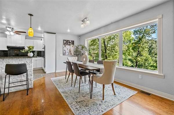 Discover this beautiful 4bed, 4bath home in a peaceful, wooded setting. This multi-level home offers space, functionality, and comfort. Inside, enjoy an open-concept living room and kitchen with a large walk in pantry, perfect for entertaining. The main floor also features a sunroom, a bedroom, full bathroom, and a dedicated home office. Upstairs, enjoy a spacious primary suite with a luxury walk-in closet and private ensuite bath. You'll also find another generously sized bedroom with a walk-in closet, full bath, and convenient laundry room. The finished basement is perfect for extended guests or hosting events, featuring a second kitchen with pantry, a large recreational room, utility closet, and a bedroom with full bath and walk-in closet. Please take a look at our attached supplements for a full list of in home features. Located just 3.5 miles from Lake Atlanta and 4 miles from Downtown Rogers.
