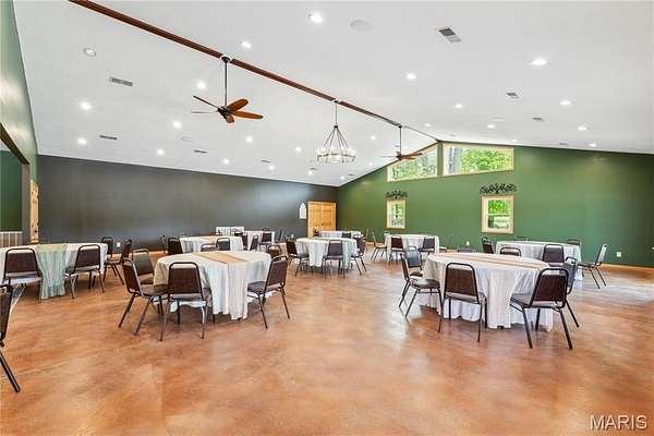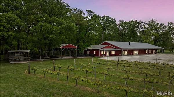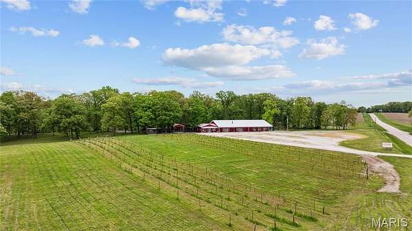 Wild Pickins Vineyards presents a rare opportunity to acquire an established event venue and hospitality property on approximately 10; acres along Route 111 in Chesterfield, Illinois. Purpose-built for private events, weddings, receptions, corporate gatherings, live entertainment, and destination hospitality use, the property offers an immediately functional event footprint with flexible indoor/outdoor programming and multiple revenue-oriented use cases. Existing improvements include a banquet/event center, bar and reception-serving areas, commercial kitchen, serving area, utility/storage space, bridal suite, multiple restrooms, walk-in cooler, walk-in freezer, wood-fired pizza kitchen, covered porch, expansive deck, outdoor gazebo/event structure, vineyard rows, and scenic pond views in a private rural setting.