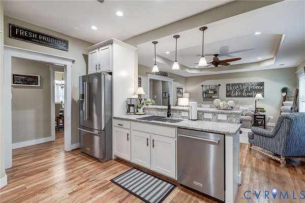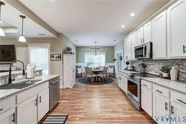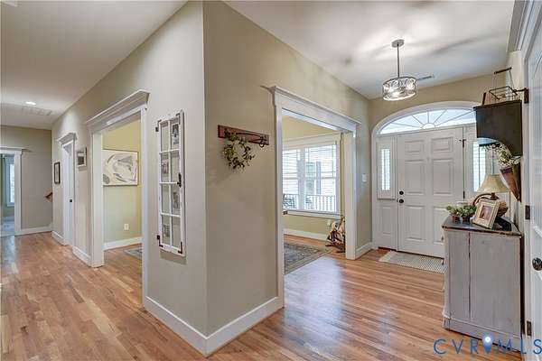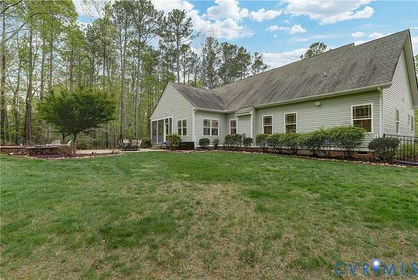 Welcome to your own slice of paradise on 6.4 serene acres in beautiful Hanover County! One level living at its finest awaits you in this well-crafted ranch with a transitional flair! Even the concrete driveway that meets you at the street whispers quality as you make your way to ample parking and your first glimpse of this impressive estate. Stepping in the front door, recently refinished hardwood floors impress you and extend into adjacent spaces including a formal dining room. Moving to the family room, you'll love the tray ceiling, gas fireplace and open flow with a view to the kitchen. Here, take note of the entire package of new appliances (2023) , the granite counter tops, recessed lighting and a spacious pantry with its solid shelving and shiplap accenting! This, ever popular, split floor plan positions the master suite in a wing with one other bedroom (possible office). Once in this suite, you'll adore the comfortable feeling and appreciate the walk-in closet (with built-ins) along with the luxury full bath complete with a large tiled shower, a garden tub, a double vanity and ceramic tile flooring. There's a convenient half bath in this wing, as well. Two more bedrooms and another full bath are at the other end of the home. Then, there's the upstairs! Here, you'll be delighted to discover an expansive rec room with a closet, another full bath, and walk-in attic storage space. A screened porch on the rear of the home provides a peaceful retreat and there's more to love outside including the aluminum fenced back yard, a whole-house standby generator, landscape lighting and a firepit/ patio area! Custom cabinets and shelving make the attached garage a "step above" and there's another firepit area, with lighting, in the front/side yard. You'll also be pleased with the triple water filter system (replaceable filters) located just inside the crawlspace door. This sought after location affords relaxed rural living with local conveniences along with easy commutes to Short Pump, Ashland, and downtown Richmond.