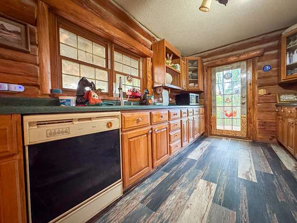 If you've been looking to escape to the country and raise some animals, then you need to take a look at this new listing! This would be the perfect place to raise livestock and create the self-sustainable life you've always wanted. The log home on the property features approximately 2,675 square feet with 2 bedrooms and 3 bathrooms. There is a bonus room in the basement that could be used for additional sleeping space. The basement has its own kitchen, living room with fireplace, bathroom, and walk-out entry/exit. This home has had some recent renovations including new flooring on the main level along with a gorgeous wrap around porch. This is the perfect place to drink your morning coffee and enjoy the tranquility country living has to offer.