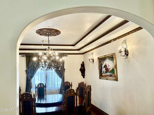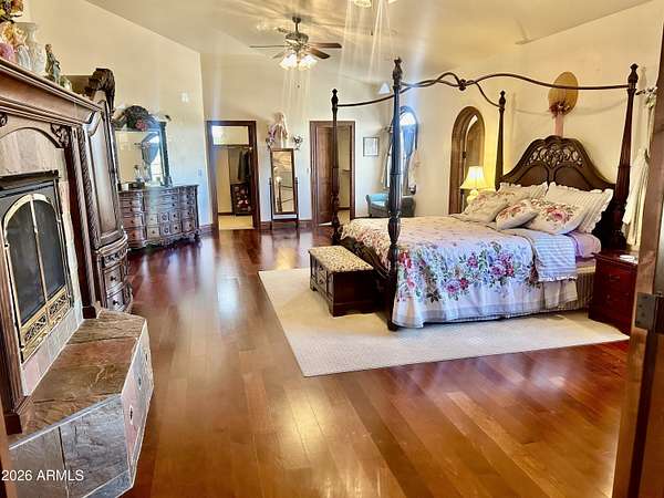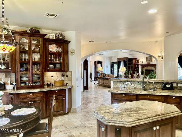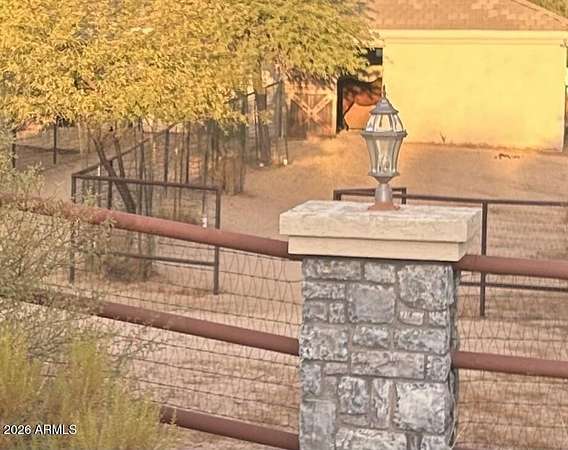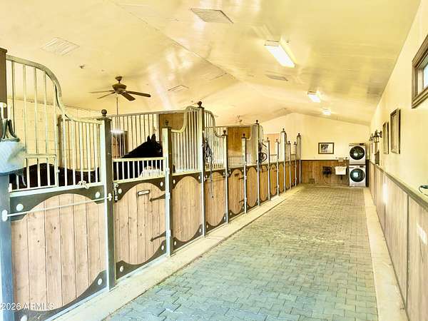 Est $15,989/moHorse Country Estate with Old World Charm! Timeless classic dark Alder wood with ornate trim everywhere, along with upgraded features like rounded corners, architecture that features triple radius arches, and radius top doors. The enormous master bedroom upstairs is over 900 sf, with a luxurious bathroom, 2 walk in closets, a private retreat room, and a spacious wood floor for ballroom or country swing dancing! Horse lover's dream with a gorgeous custom horse stables matching home, with 4 custom iron and wood stalls and the stables has cinder block, fire board and fire sprinklers. Horse stalls lead out to 120 foot paddocks framed by mature mesquite trees for shade. Owner Agent Listing.