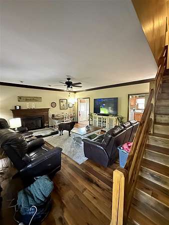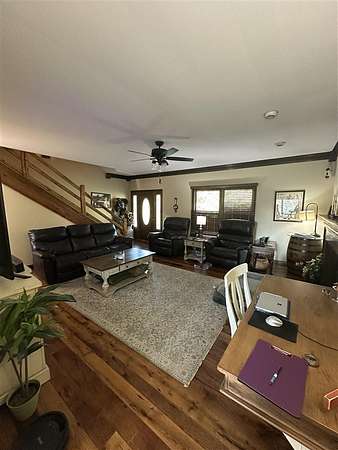 Don't miss out on this beautiful country oasis. This three-bedroom, two-bathroom, two- half bath custom built home offers an abundance of square footage and special features. Living area boost gas fireplace. Along with exquisite wooden details like wide crown molding, tongue and groove hardwood flooring and open staircase. Just off the living area is the kitchen with eat in dining area, ample cabinetry, and new Chicago brick flooring. Exit the kitchen onto newly built 20 x 25 wooden deck with amazing countryside views. An oversize master bedroom with hardwood flooring, as well as a newly renovated master on suite bathroom with walk in shower, granite countertop and tile flooring. Upstairs you'll be astonished with ample amount of space in the second and third bedroom. Divided with a full bathroom, these rooms are perfect for your expanding family or visiting guests. The poured concrete basement has a partial finished room and half bath as well. Outside you'll find nothing short of impressive country views and extras. Home offers multiple sitting and entertaining areas. From the covered front porch, new rear deck, or it's lovely breeze way between the house and two car garage. Property includes storage building and adjacent poured concrete pad. The large 30 x 50 metal garage/shop with covered rear storage area has tons to offer as well. From concrete floors, electric, and water. Along with a car lift and two garage doors making this a perfect workspace and addition the property. This 8.11 acres has partial fencing, an abundance of mature shade trees, a pond and country views that are a must see. Looking to start a small farm or in the market for more acreage this property with its endless possibilities is the place for you! Additional acreage available.