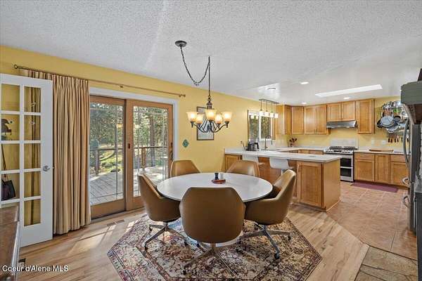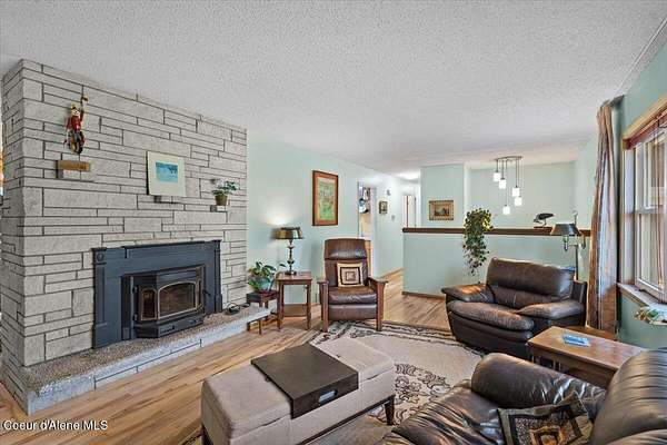 This home on over 4 fenced, private, treed acres on a cul de sac has been beautifully upgraded! Features include a main floor master with en suite bath, another large bedroom and a full bath. The remodeled kitchen features a skylight, custom cabinets, newer stainless appliances, Corian & butcher block counters, 2 sinks, a filtered water faucet & wine fridge. ON the main level, you'll find hardwood floors, updated baseboard / trim, and family room with Quadra Fire wood-burning insert. The daylight walkout basement features all new flooring, living room with Harmon pellet stove, 2 more bedrooms, an updated bath with tiled shower and an office with potential to be a 5th bedroom. Recent updates include all new windows & sliders, insulated vinyl siding, new water softener & filtration and a new septic drainfield. There's an oversized 2-car garage plus a 24'x36' shop with RV pad & power. Full length rear deck refinished in 2025. The gated driveway exits onto Highway 2.
