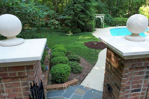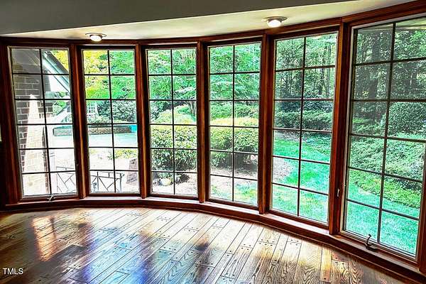 Incredible Estate Home minutes from the Heart of North Raleigh! Enhanced details like Copper Gutters and door trims, many Floor to Ceiling Windows letting in tons of Natural Light and Showcasing the Stellar & Private Backyard! This home is perfect for anyone that loves to entertain and host events! The Kitchen is Large & Open with Updated Custom Solid Wood Cabinets maximizing every available space, Top of the Line Appliances, Island with Bar Stool Seating ability, Under Cabinet Lighting, Upgraded Counters and Backsplash plus could be set up with a Keeping Room or Eating Area with a Gas Fireplace! The Family Room is fit for Royalty with Stately Wood Built-Ins & Cabinetry, Wet Bar that can be open to serve guests or closed off so that it blends in. Formal Dining Room and Living Room that easily converts to an Executive Office Space. Main Floor Guest Suite with Laundry Room, Full Bath and Door Leading to the Patio. Primary Suite with Huge Walk-In Closet plus Built-In Storage and Laundry Shute, Additional Bedrooms with Large Closets, Even a Cedar Lined Closet in one! Massive Bonus Room with High Ceilings and Secondary Staircase. Updates and Upgrades that have been recently preformed include Freshly Refinished Hardwoods, Painted throughout, & Updated Lighting! The Backyard Oasis is your own private retreat with a 834 sq. ft. Patio that is accessible from the Back Hall, Kitchen and Family Room overlooking the Lush Landscaping and Refreshing Pool. Many of the windows have been replaced as well. This home truly has it all and is ready for you!