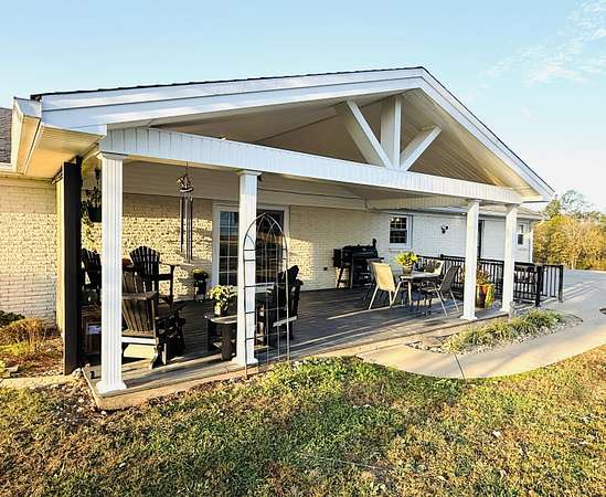 Welcome home! Nestled on top of the rolling bluegrass hills of Kentucky this newly renovated, beautiful brick ranch home-----sits in horse country-----is close to the World Famous Bourbon Trail-----and offers SPACE, SPACE, & MORE SPACE!!! The cherry on top is the 30X60 all-steel building (with 14ft roll-up door & 10ft overhead door & 24+-FT height in the center) that is perfect for your workshop, equipment, animal friends, or storing all of your toys! Drive-up the long concrete driveway where you're greeted by over 2 acres of lush yard space (could be fenced for your favorite horse) & mature shade trees that are perfect for tire swings & enjoying picnics on hot summer days! Some property highlights include: An oversized 2-car attached garage, three beautiful fireplaces, a full basement that is like its very own house, & has access from inside & outside of the home (rental space or AIR BNB?!) The basement has a kitchenette area, bedroom area (PLENTY of room for additional bedrooms if desired!) living room area, recreational area, bathroom, plus several additional storage rooms. The basement also offers peace of mind for inclement weather. The main level of the home includes a wide-open kitchen with stainless steel appliances, breakfast bar island, eat-in dining space, & an extra-large oversized laundry room----there's also an additional huge room that's a perfect space for large family gatherings, a formal dining space, or playroom! In the living room you'll find a cozy brick fireplace that has built-in shelving & custom built-in desk. This home is an entertainer's dream with the stunning back covered porch with vaulted covering, plus additional concrete back patio area, that is perfect for your firepit & unwinding after a long day. Don't forget about the stone covered front porch, with grand entry charm, where you can spend your mornings sipping your coffee & watching the sunrise. This home gives you the perfect location for a private rural homestead in a charming quaint Kentucky town, while still only being only approximately 30 minutes from Bardstown, 45 minutes from the Lexington airport, & a little over an hour from the Louisville airport. Come enjoy Kentucky country living at its finest! Call today! Please note: Inspirational photos have been included for furniture/decor inspiration as well as showcasing how the basement could be set-up with various decor/pool table/kitchen appliances etc. Home and/or basement could possibly serve as an AIR BNB (bourbon trail?) and/or rental option if desired. Buyer to verify schools and zoning.