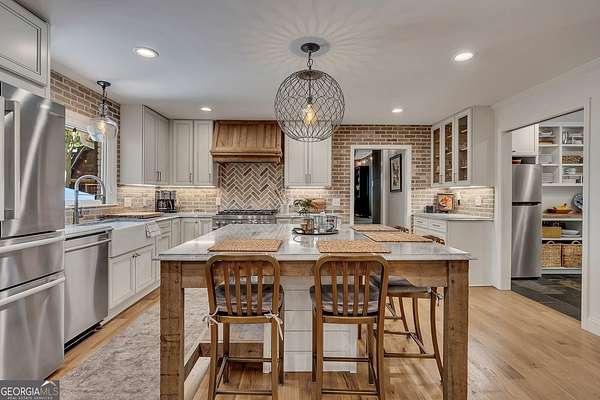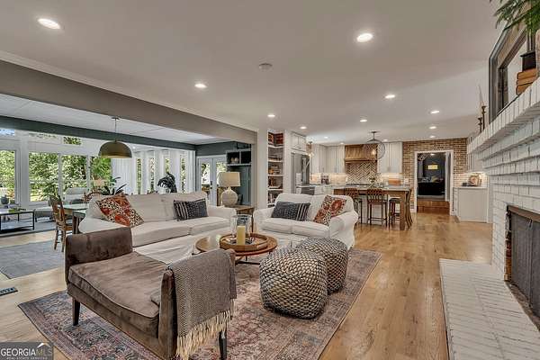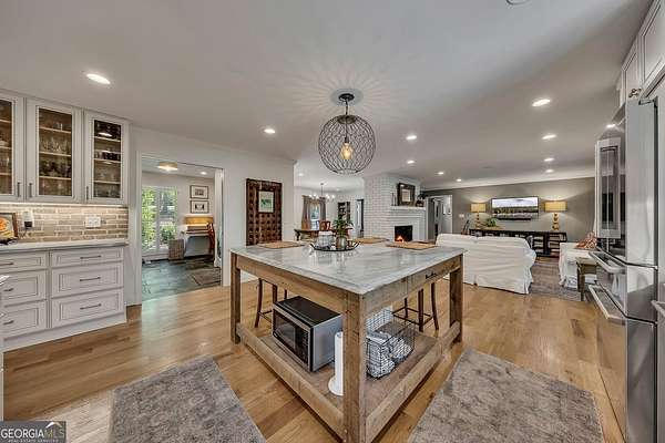 Rare opportunity to own a true lakefront retreat on over two private acres, featuring more than 300 feet of shoreline and a dock perfect for fishing or launching your kayak or small boat. Surrounded by mature hardwoods, the property offers multiple peaceful vistas to relax and take in breathtaking sunset views across the water. The setting is incredibly private and serene with a perfect blend of sun and shade filtering through the trees-creating a calm natural backdrop that makes every day feel more relaxed and connected to the outdoors. Located in a quiet, well-established neighborhood, this beautifully updated brick ranch blends timeless character with high-end upgrades. The current owners completed an extensive renovation since 2020, thoughtfully opening up walls to create a bright airy layout where the kitchen, sunroom, living room and dining room all connect seamlessly-creating a natural gathering space that lives as beautifully as it entertains. The fully remodeled kitchen showcases custom cabinetry, marble countertops, a farmhouse sink, updated appliances and under-mount lighting. The expanded pantry space extends far beyond a traditional setup-functioning as a versatile keeping room, office area and laundry space, complete with wood countertops, built-ins and a second refrigerator. The main-level owner's suite is thoughtfully positioned for convenience and functionality. The ensuite bath features marble countertops, a gorgeous tiled shower and high-end lighting. The home also includes four additional guest bedrooms and two full guest bathrooms, with all bathrooms throughout the home having been completely renovated with upscale finishes. A stunning sunroom overlooks the backyard and captures peaceful lake views, offering a light-filled space to unwind while enjoying the beauty of the outdoors no matter the time of year. Throughout the home, you'll find beautiful 5" white oak hardwood floors and updated doors and windows that enhance natural light and frame the surrounding landscape. Major system and exterior improvements completed in 2020 include a new roof, a new HVAC system, new water heater, new garage doors and openers, full exterior painting, professional landscaping and a fenced front yard. A new deck provides the perfect setting for outdoor dining or simply enjoying the tranquil lake views. For the car enthusiast or hobbyist, the detached garage is a standout feature-accommodating up to four vehicles while also offering ample space for a workshop, storage or project area. Whether it's a car collection, woodworking or a dedicated creative space, this setup provides flexibility rarely found. Above the garage, a heated and cooled finished bonus room adds even more livable space and flexibility for a game room, office or private retreat. In addition, the main house includes a two-car garage. This is a special opportunity to own a beautifully renovated lakefront home with acreage, privacy and captivating views-where the surroundings, updates and lifestyle come together to create something truly exceptional. Additional photos of the home and land will be added in the next several weeks. Contact Jarrett to learn more and to be notified the moment the home goes live.