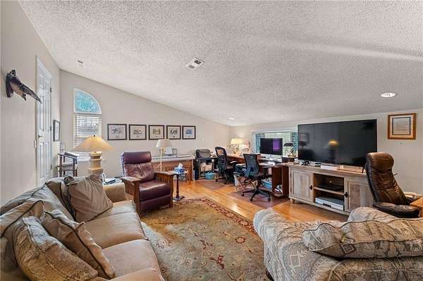 Stunning estate home offering exceptional privacy & beautiful lake views. This expansive 6,057 sq ft home features 3 beds & 3 baths, including 2 primary suites with their own living areas. 2 additional spacious living areas, a formal dining room, a secure safe room, abundant storage, & direct patio access from every room-creating seamless indoor-outdoor living. A guest house in the rear of the 3-car garage has 510 sq ft. This studio apartment/mother-in-law suite comes complete with an indoor pistol range/walk-in closet. Additional 2-car garage and additional parking, both for guests & RVs. Expansive deck and stone patio area featuring a step-down fire pit & a decorative waterfall feature (currently not in operation but able to be restored). Thoughtfully designed with well-separated living spaces, this property offers flexibility as a private luxury residence, multi-generational living, executive retreat, conference-style setting, or potential income-producing opportunity.