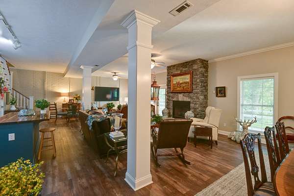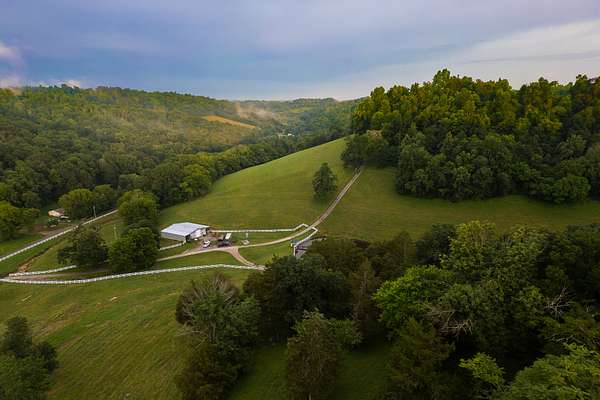 Hilltop Paradise with Spectacular Views on 90+/- Acres! Don't miss this rare opportunity to own a beautifully maintained working cattle farm nestled atop a scenic hill with unmatched panoramic views. This versatile property is fully fenced and cross-fenced, ideal for livestock or a private retreat. Property Highlights: 90+/- acres of rolling pastures and mature trees, Custom-built 4-bedroom, 2-bath brick home with hardwood and tile floors, Full basement with kitchen, recreational space, fireplace, and walkout patio, Renovated master bathroom upstairs for modern comfort, Cozy living room with fireplace and arched entry from the foyer, poured concrete foundation, 2 barns (40x60) - one has front porch and kitchen, Screen in patio, 2 spring fed ponds and abundant wildlife for nature lovers and hunters, Large workshop with its own water well, Utilities & water to barn and shop and so much more!
