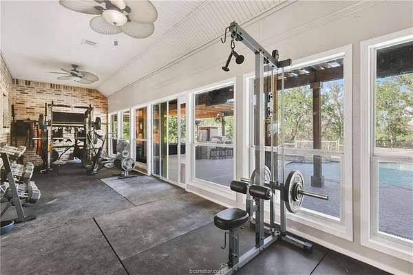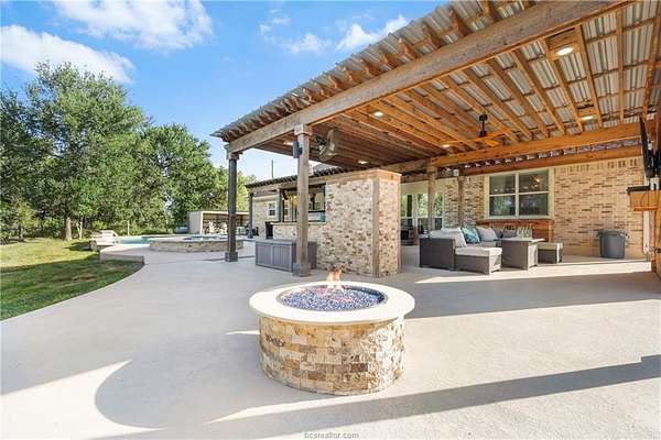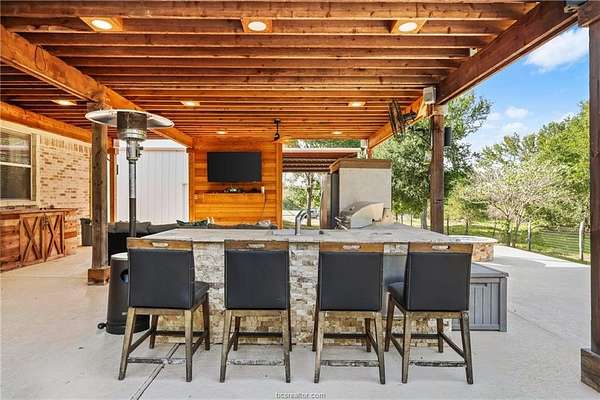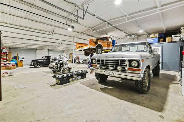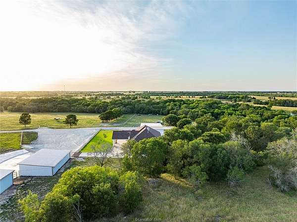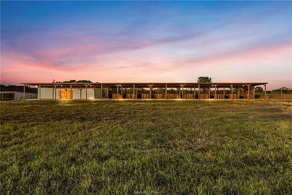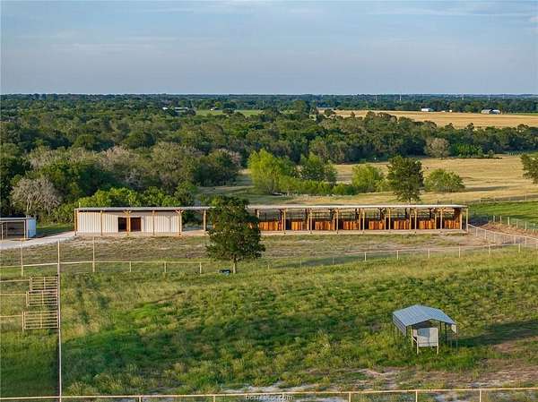 Welcome to JB Ranch - a one of a kind 40 acre estate featuring a custom-built brick home, +/- 2,800sqft insulated/air conditioned shop with a vehicle lift, premier equestrian amenities, ultimate outdoor entertainment area featuring a heated pool, a private +/-2 acre pond, and even more. Just a short drive from College Station, Texas A&M, Austin, and Houston. The property showcases rolling terrain, open pastures, and wooded areas, all behind a gated pipe entrance with concrete parking and a porte-cochere. The residence offers a luxurious primary retreat with a fireplace, oversized walk-in closet, and spa-like bath featuring a soaking tub, separate shower, and dual vanities. Two guest bedrooms, a full bathroom, and a home office with custom built-ins. Equestrian amenities include a 10-stall barn with runs, tack/feed rooms, wash bays, and a 240' x 140' roping arena. The ranch also features a 40' round pen, six pastures featuring automatic waters, and even more.