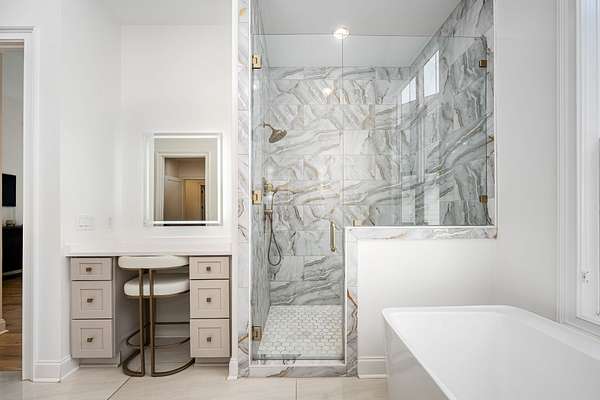 The gourmet kitchen features GE Monogram smart appliances, commercial-grade stainless steel w/ scratch-resistant sapphire glass accents, a massive island, & quartz countertops. Inside you'll find custom fixtures, meticulously handcrafted stair railings, dimmable designer lighting, vaulted ceilings, premium trim, & custom closets w/ built-ins. LVP flooring, Toto washlet toilets, & a luxury pet spa elevate comfort throughout.