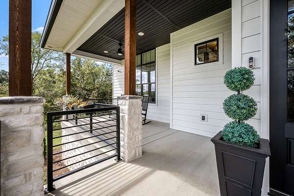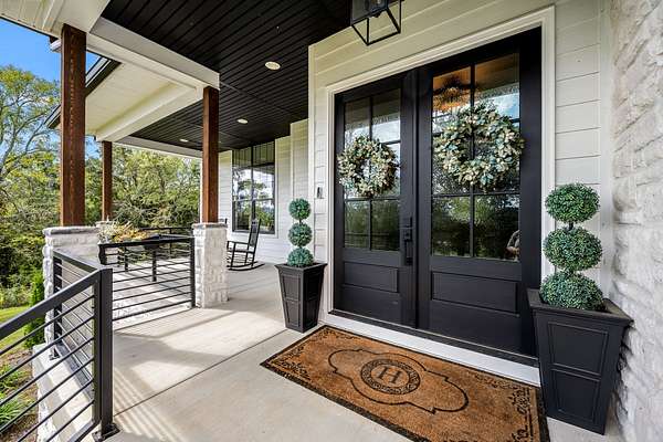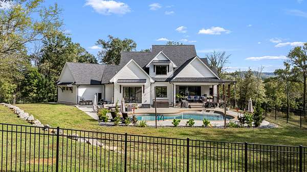 Exterior features include Hardie board & stone siding, two front porches, & a wraparound Trex deck w/ panoramic views. Entertain around the heated saltwater smart pool w/ tanning shelf, in-pool loungers, pre-installed fountain lines, & a large lounge area. Outdoor stairs lead to a large shop, gym, and ample storage.