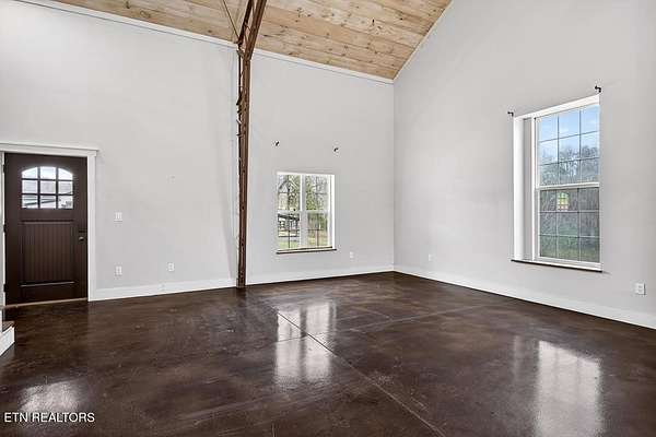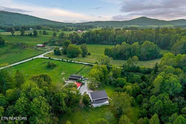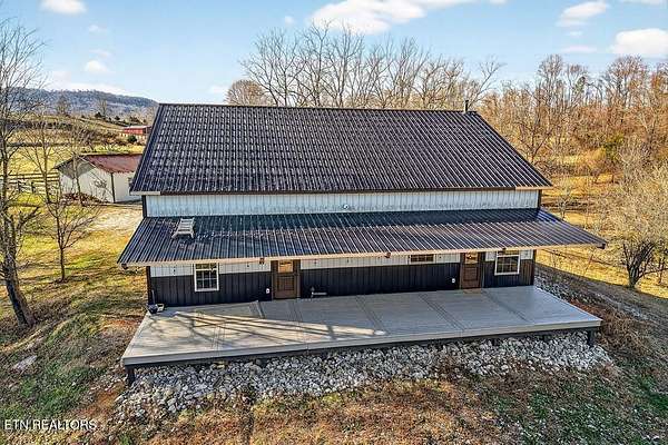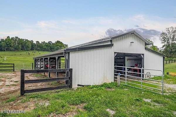 Discover your dream retreat on 27.4 unrestricted acres in the heart of Pickett County! This custom-built 2022 barndominium blends modern comfort with country charm, featuring steel construction with wind bracing & high-speed fiber optic internet. Inside you'll find nearly 2,600 sqft of living space with soaring ceilings, a main-level primary suite, and additional loft living complete with kitchenette. Equestrian enthusiasts will love the horse barn with feed and tack room, 2.5 fenced acres next to the barn, a fully fenced property perimeter, multiple spring-fed creeks that run through the property - including your very own waterfall!! A detached workshop with electrical and plumbing offers space for all the hobbies. Whether you're looking for a full-time residence, vacation home, or working farm, this unrestricted property checks every box: scenic mountain views, water frontage, space for the animals and a versatile layout designed for both relaxation and productivity!! Buyer to verify ALL information!