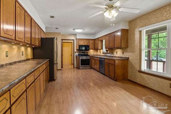This outstanding property is the best of both worlds. It offers private country living with room to breathe that's still close to local shopping and dining. Located in Crestview, FL, the home is a quiet retreat with plenty of room for guests or hobbies, situated on 1.75 acres of beautiful land with mature trees. The 3-bedroom and 2.5 bath house has several upgrades, complete with a 2-car attached garage, PLUS a 2-car detached garage, perfect for the car enthusiast, wood worker, or other collectors. The previous owners invested in new floors in 2022, a Master Bath remodel in 2025, HVAC in 2021 along with ductwork, Hot Water Heater in 2022, and a whole-home Generator in 2023. You will love the cathedral ceiling in the living room, the Florida Room and the back porch haven. The fully fenced back yard is yours to fill with children, pets, or a garden. The home has strong bones and creates a blank canvas for you to customize it to your country wonderland. The possibilities are endless.