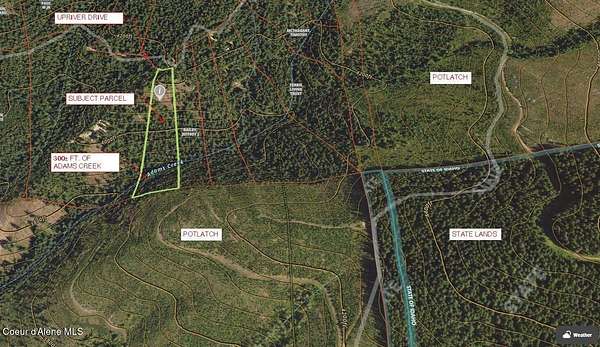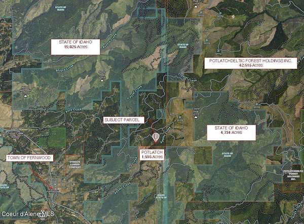 Perched above the valley with forever views of the Saint Joe Mountains, this 6-acre parcel provides a breath of fresh mountain air to quietly contemplate the endless recreational opportunities which surround you. The tranquility of 300+/- feet of Adams Creek gently flowing through the property is yours alone to enjoy. Adjoining directly with Potlatch timber lands, this parcel is your gateway to literally thousands upon thousands of acres of timber and state lands waiting to be explored; 4-wheeling, ATV'ing, hiking, hunting or just enjoying the peaceful solitude. Basic necessities are available at the Fernwood Mercantile country store (5 miles away); from there, a short drive along Idaho's White Pine Scenic Byway can lead you to the shores of Lake Coeur d'Alene, or the southern route to the Palouse.