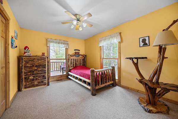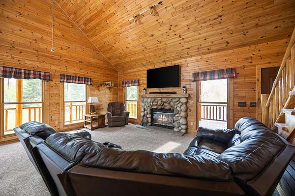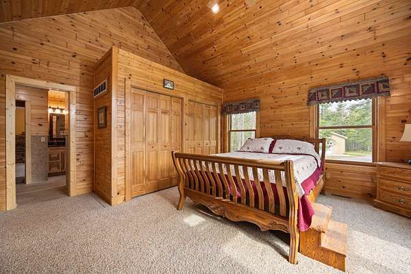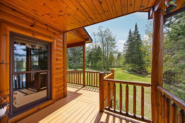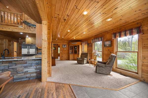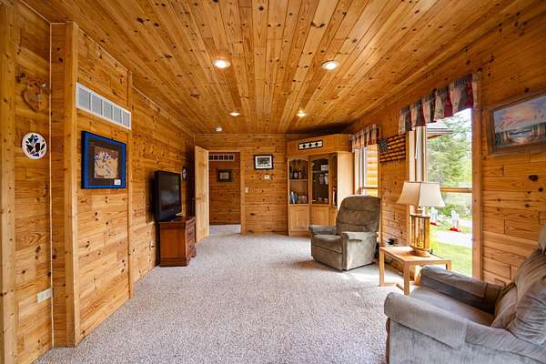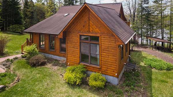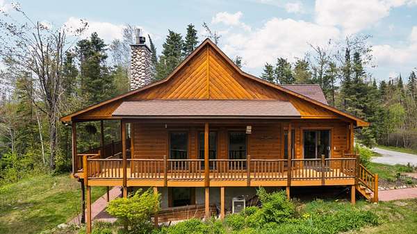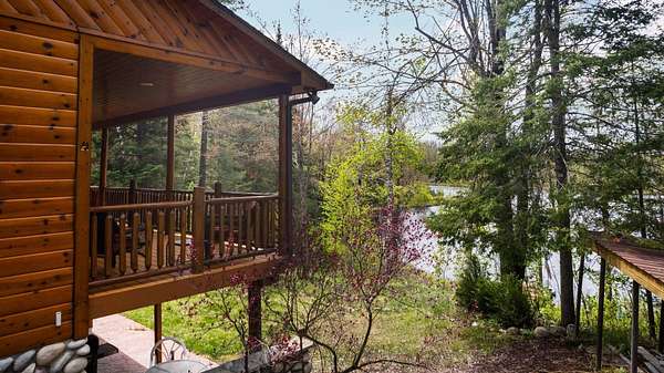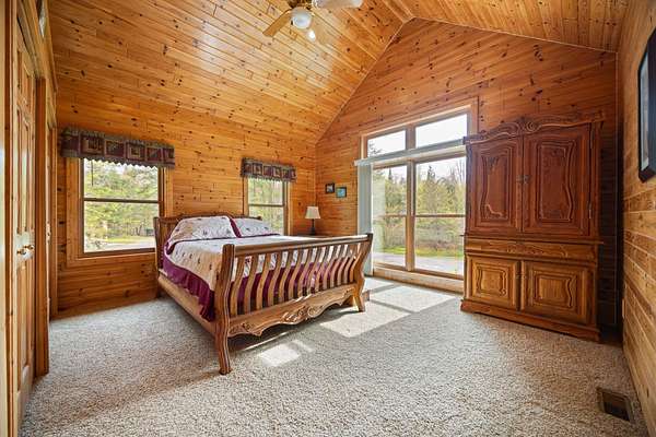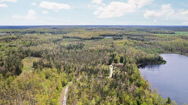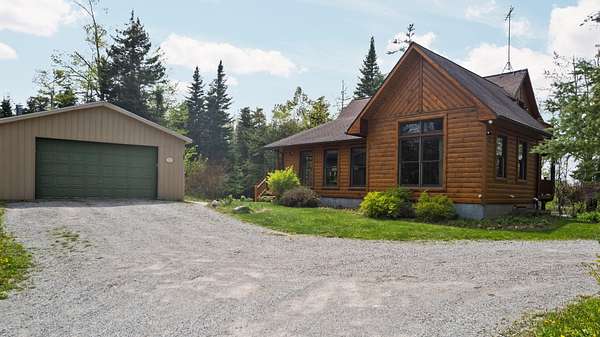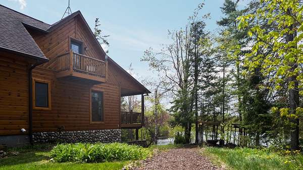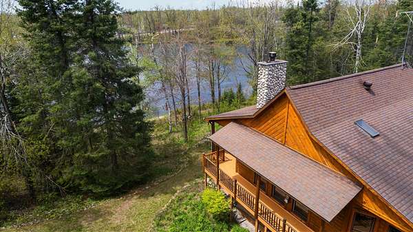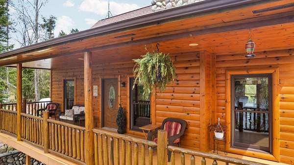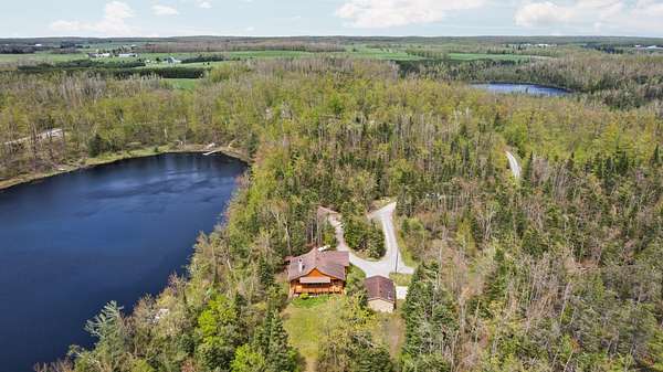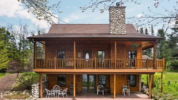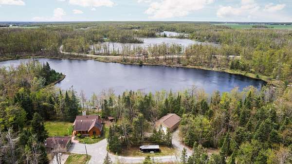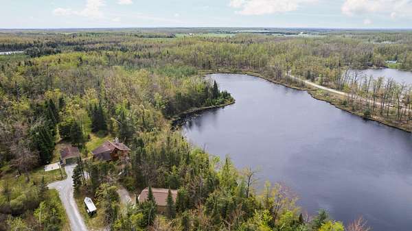 Located on 41 rolling acres and spanning nearly 1500 feet of frontage on scenic Traverse Lake, this stunning log-sided home offers the best of waterfront and acreage. The 4-bedroom, 2-bath home features a wood fireplace and a beautiful knotty pine interior, creating a warm and inviting atmosphere. Picturesque views from the covered porch and patio areas highlight its serenity. Additionally, a 30x40 heated barn with a finished 16x16 office space overlooking the water, perfect for working from home with fiber optic internet. The fully finished, walk-out basement and whole house generator add convenience, space and peace of mind. Also included is a 28x24 garage and a private drive, offering ample space for vehicles and recreation. You will want to see this dynamic property.