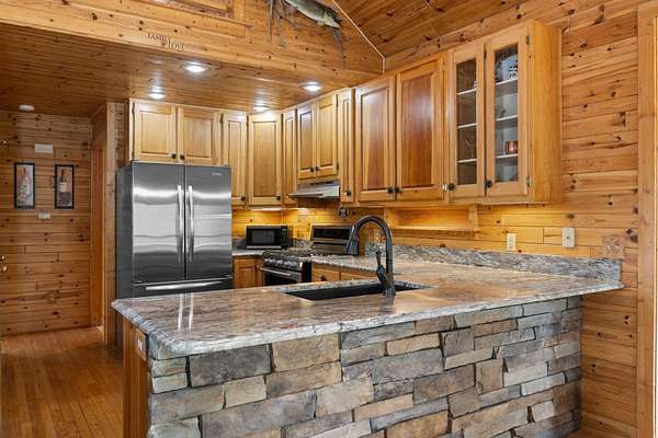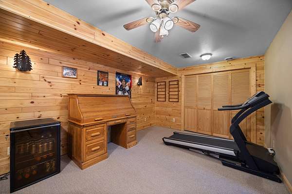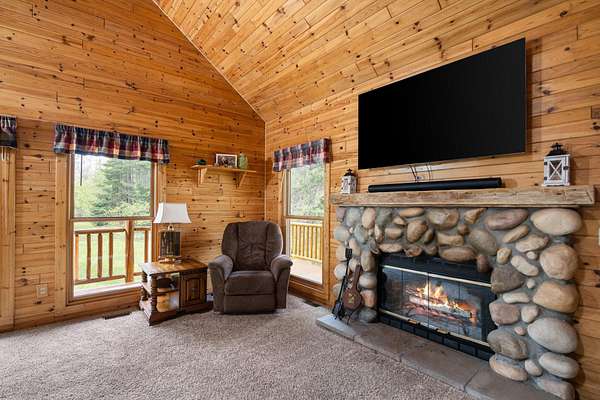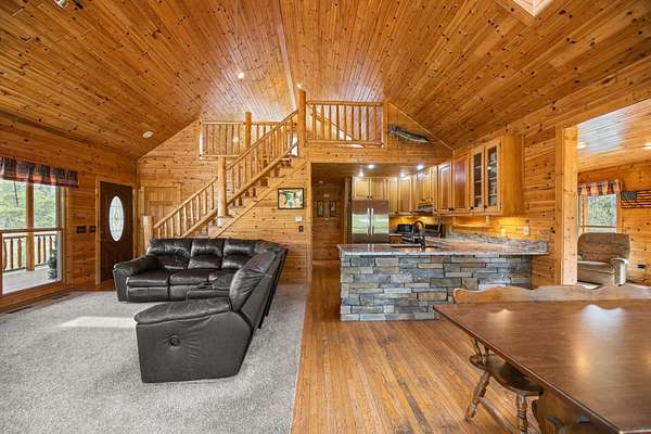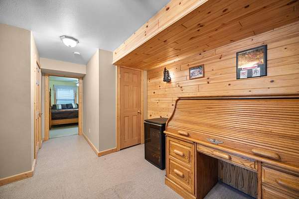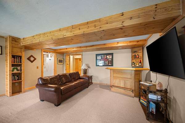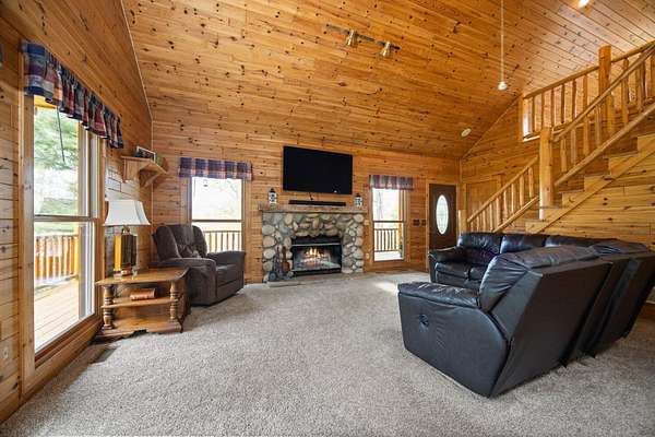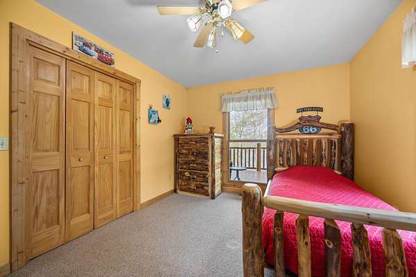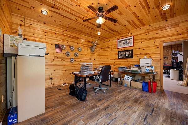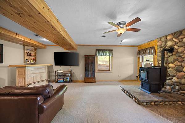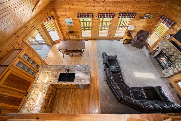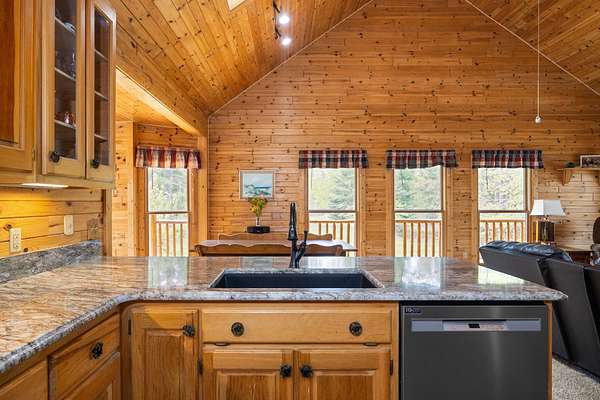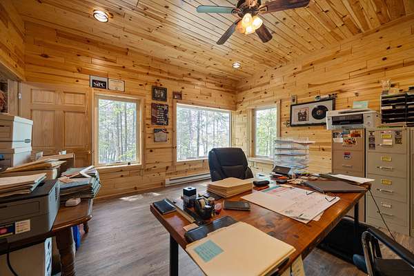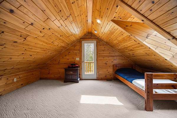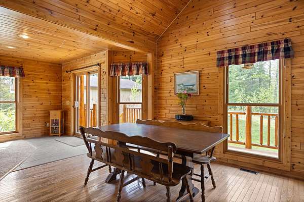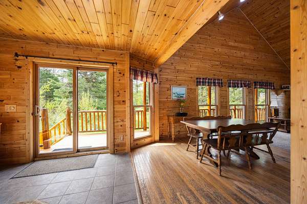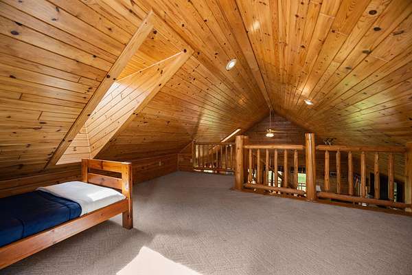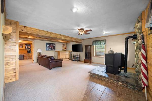 Located on 41 rolling acres and spanning nearly 1500 feet of frontage on scenic Traverse Lake, this stunning log-sided home offers the best of waterfront and acreage. The 4-bedroom, 2-bath home features a wood fireplace and a beautiful knotty pine interior, creating a warm and inviting atmosphere. Picturesque views from the covered porch and patio areas highlight its serenity. Additionally, a 30x40 heated barn with a finished 16x16 office space overlooking the water, perfect for working from home with fiber optic internet. The fully finished, walk-out basement and whole house generator add convenience, space and peace of mind. Also included is a 28x24 garage and a private drive, offering ample space for vehicles and recreation. You will want to see this dynamic property.