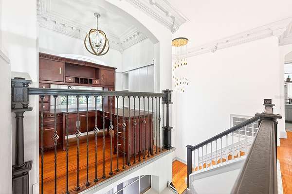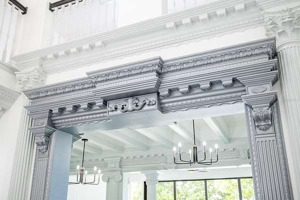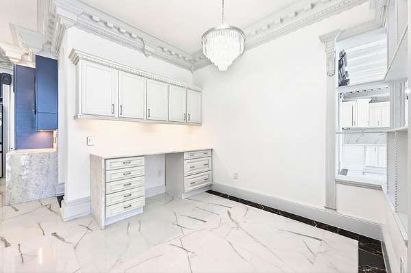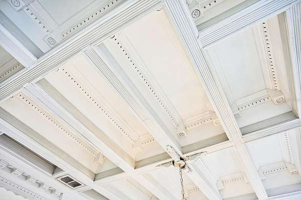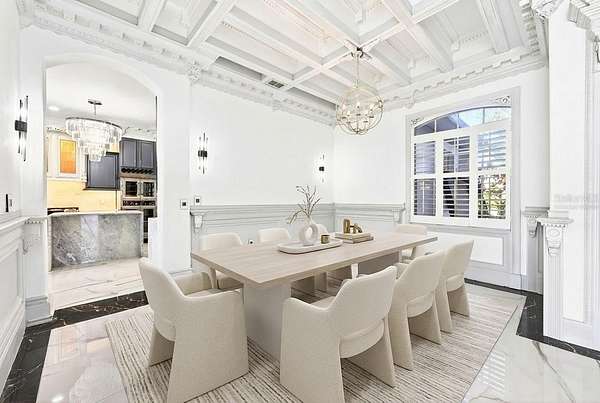 Built-In Features, Ceiling Fans(s), Chair Rail, Coffered Ceiling(s), Crown Molding, Eat-In Kitchen, High Ceilings, Kitchen/Family Room Combo, Primary Bedroom Main Floor, Split Bedroom, Thermostat, Walk-In Closet(s), Window Treatments