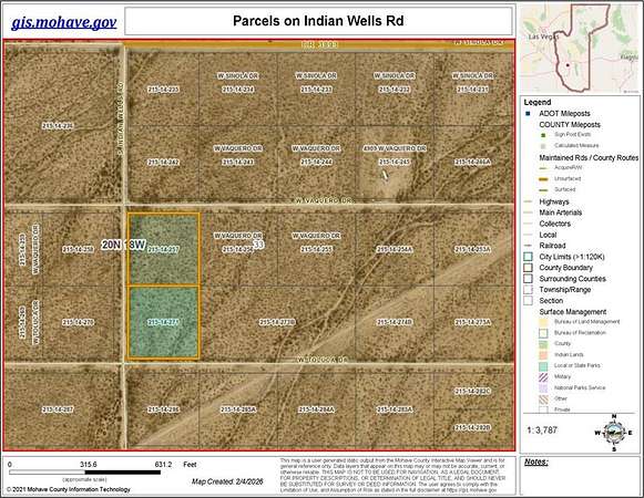 From Oatman Hwy, turn south (left) on Indian Wells Road for 0.44 miles. Corner lot with crossroad Vaquero. Property on east side (right). Use Apple maps or Google maps for best navigation.