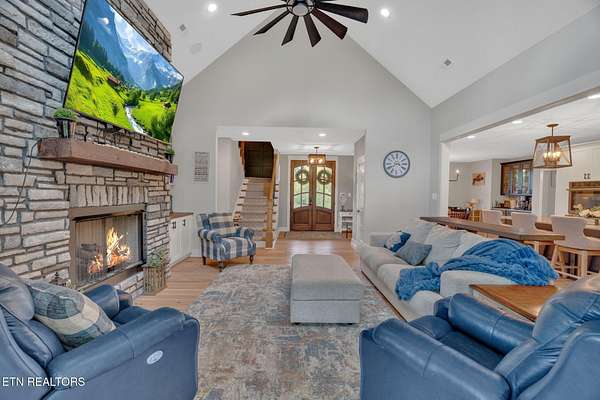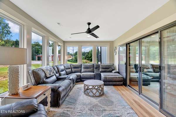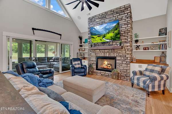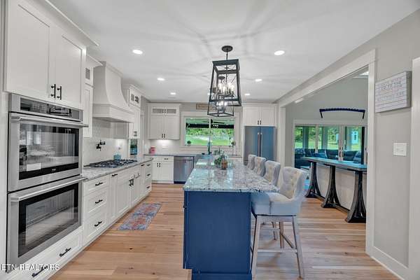 Beautiful Modern Farmhouse in the heart of Powell, but Unrestricted! Main home has 5 Bedrooms 4.5 Bathrooms w/ additional 1 BR/1Bth apartment over the huge 3-car garage. Two primary bedrooms on the main connected by a shared open floor plan with den and an enormous kitchen with granite island, stainless steel appliances, gas stove, 2 ovens, pot filler, breakfast area, custom built-ins and luxury features/unique upgrades including a whole home water filtration system, RED BARN with 3 bays and an RV hookup and separate power ready... Perfect for business, second home and more. Second master suite offers entire upstairs living quarters.. ideal for multi-generational families as well as the beautiful separate apartment above the 3 care garage! Gas fireplace, beautiful hardwoods accent walls, 2 grand stairwells, custom cabinetry throughout, lots of storage space and multigenerational multifunctional design. Potential to subdivide into 2 lots. This modern farmhouse is a dream - inviting you to retreat and relax without leaving home! Designed already with a pool in mind with sunroom heated/cooled off the covered porch with Exterior TV and surround sound - perfect for entertaining and hosting all your loved ones! This is more than a house-it's a lifestyle. A luxury retreat where you can grow, host, relax, and make memories for generations. Don't miss this rare opportunity to make this your dream home!
