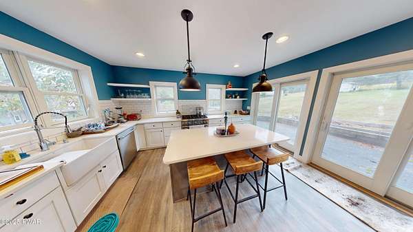 Great location, only few minutes from the town of Hawley and Lake Wallenpaupack, this home was beautifully restored and it is ready for a new family. This home features an open floor plan, high ceilings, brand new kitchen, spacious living room, 2 bedroom, 2 baths, brand new deck and 2.48 acres of land to enjoy the nature with your family and friends. Great value !!!!