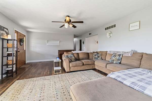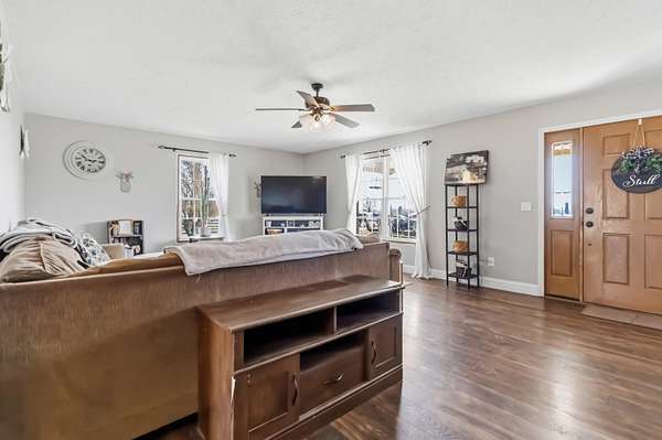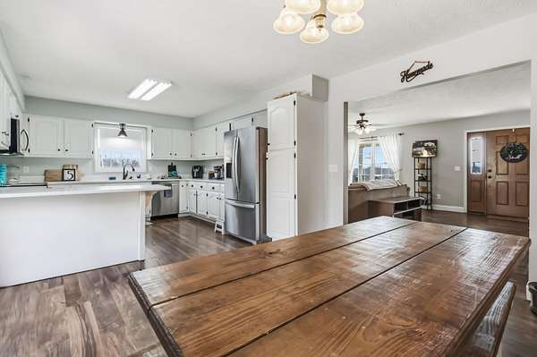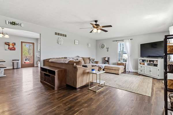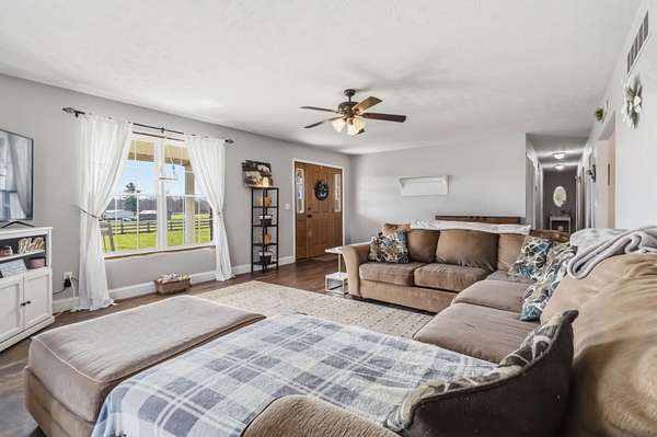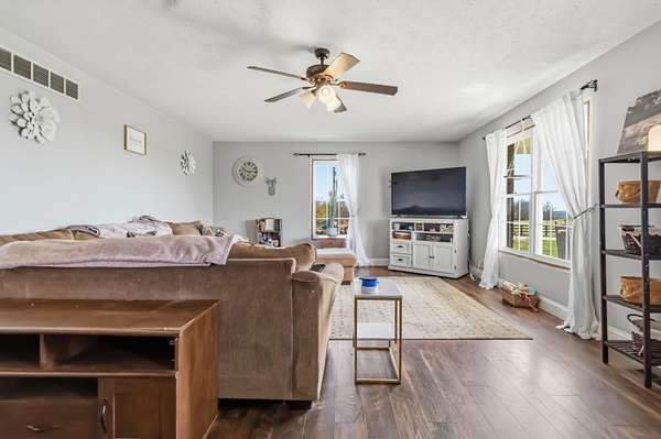 Escape to your own private countryside retreat with this stunning ranch brick home, perfectly situated on 10.52 acres of usable land. Featuring a scenic pond, fenced acreage, and a peaceful creek along the rear boundary, this property offers the ideal blend of beauty and functionality. Inside, you'll find 3 spacious bedrooms, a sun-filled living room, and a beautifully updated kitchen complete with quartz countertops and included appliances. The finished walkout basement expands your living space with a cozy den featuring a gas fireplace, a bonus room, full bathroom, and dedicated laundry area. Outdoors, the possibilities are endless with a massive detached workshop offering multiple garage bays and electric, plus hay stalls ready for livestock. With no restrictions, this property is perfect for farming, horses, cattle, or simply enjoying wide-open space in a serene rural setting.
